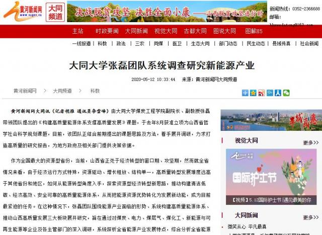 黃河新聞網大同訊(記者胡雁 通訊員李雪峰)由大同大學煤炭工程學院副院長、副教授張磊帶領團隊提出的《構建高質量能源體系支撐高質量發展》課題,于去年8月獲準立項為山西省哲學社會科學規劃課題,目前,該團隊正結合前期提出的課題思路及方法,著手展開調研,力求打造高質量的研究報告,為地方政府及相關部門提供決策依據。