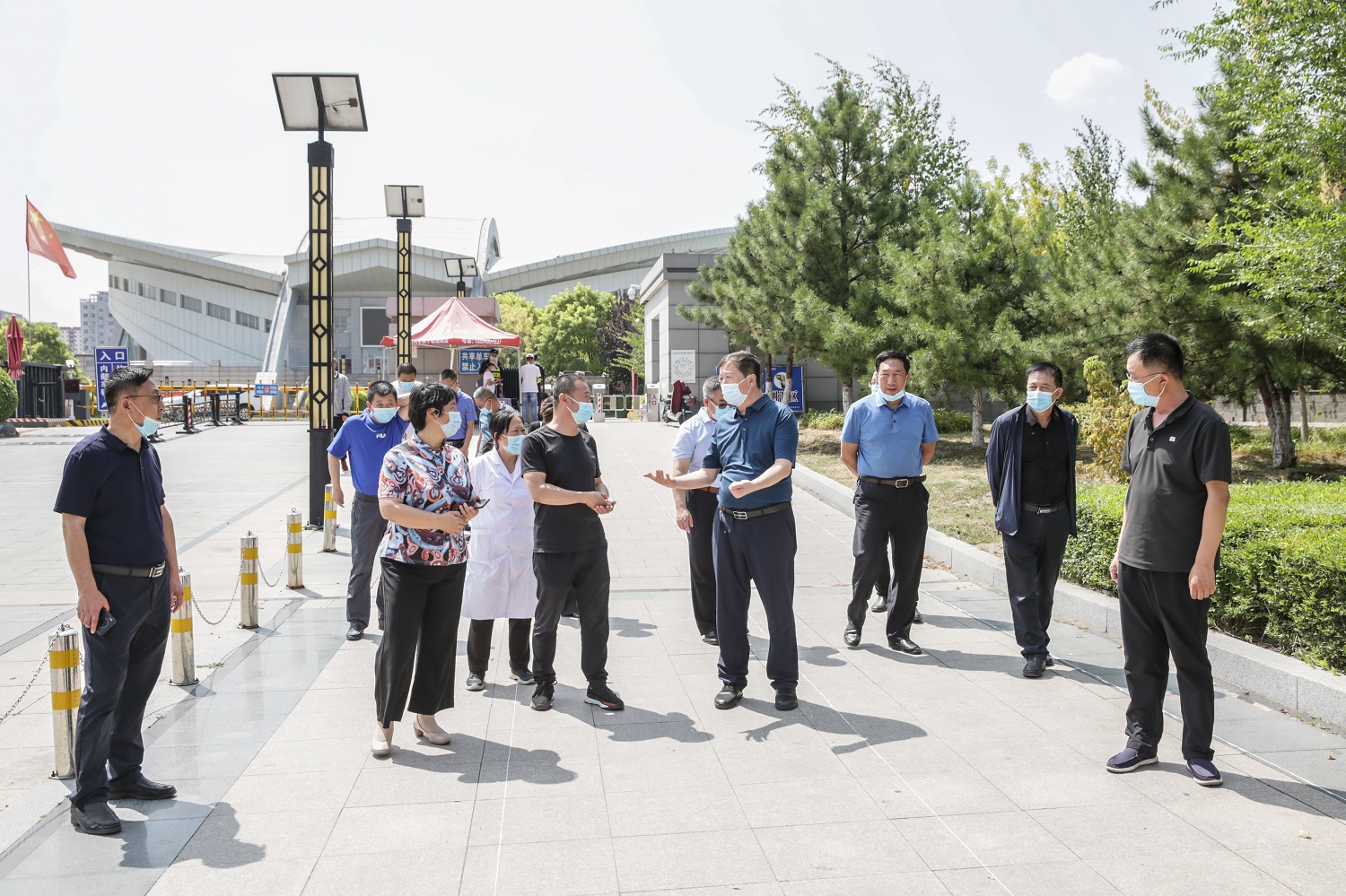 ?? 8月10日上午,校黨委書記弓永華深入御東校區一線檢查指導學校防疫工作,校領導寇福明、姚麗英,校疫情防控工作領導小組辦公室成員、相關職能部門負責人等隨同。
