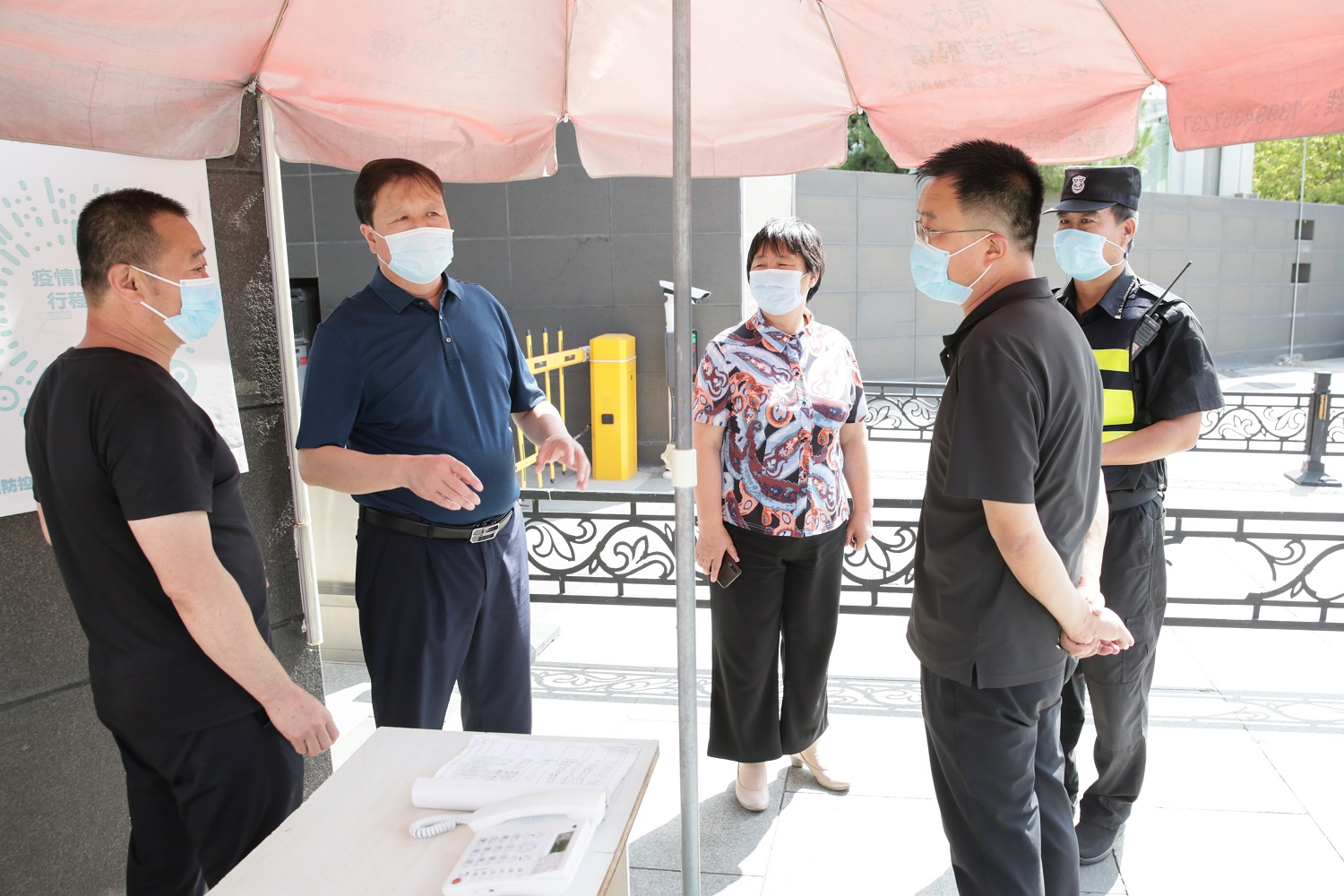 弓永華一行先后來到學校各開放校門門崗、校醫院、學生生活服務區等地開展實地工作檢查,一一聽取防疫工作匯報。