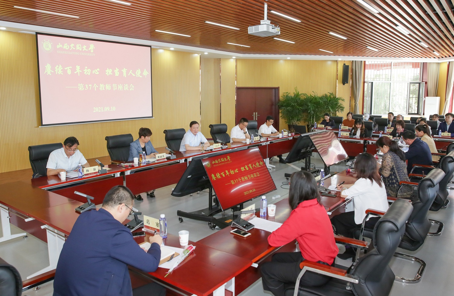 上午9時,一場氣氛熱烈的教師節座談會在文德樓一層會議室拉開帷幕,二級教授,國家級、省級一流課程負責人,省級教學名師、省級教學能手、輔導員、退休教師、新入職教師代表等歡聚一堂,跟著校黨委常委、副校長姚麗英重溫習近平總書記的諄諄教誨,暢談學校事業興旺發展,共話教書育人神圣使命,聆聽校黨委書記弓永華“堅守‘四心’爭做新時代的好老師”的熱切期待。