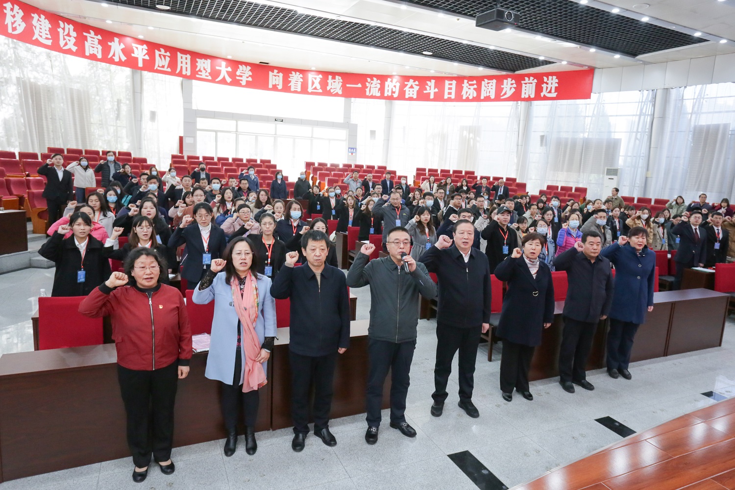 姚麗英致辭,代表學校3萬余名師生員工對新教師們表示熱烈歡迎和祝賀,并一一陳述了“十四五”期間學校的辦學理念、辦學目標定位、學科專業定位、人才培養定位、服務面向定位,以及奮斗目標、實施路徑等,希望新教師們進一步深入學習并努力貫徹落實到工作中,并圍繞如何成長為優秀的同大一分子提出意見。她指出,一要牢記職責使命,自覺肩負起傳承文明、傳播知識、傳播思想、傳播真理的職責,肩負起塑造靈魂、塑造生命、塑造新人的時代重任,堅守立德樹人根本任務,堅守為黨育人、為國育才光榮使命,時刻牢記、自覺踐行。二要專注于修煉內功,堅定理想信念,升華道德情操,擁有扎實學識,永葆仁愛之心,無愧于“人民教師”這一太陽下最光輝的職業。三要善于吐故納新,永葆“知識恐慌感”“能力恐慌感”,不斷更新理念、更新知識、提升技能,以永遠在路上的勤勉與執著,為擁有出彩的人生源源不斷地積攢能量。她強調,作為同大的教師,還要成為“雙師雙能人”,以我們的人才培養定位為引領,厚積學科專業知識,提升行業企業實踐能力,把學生培養成能文能武的區域需求、行業認可的有用之才,辦人民滿意的大學。