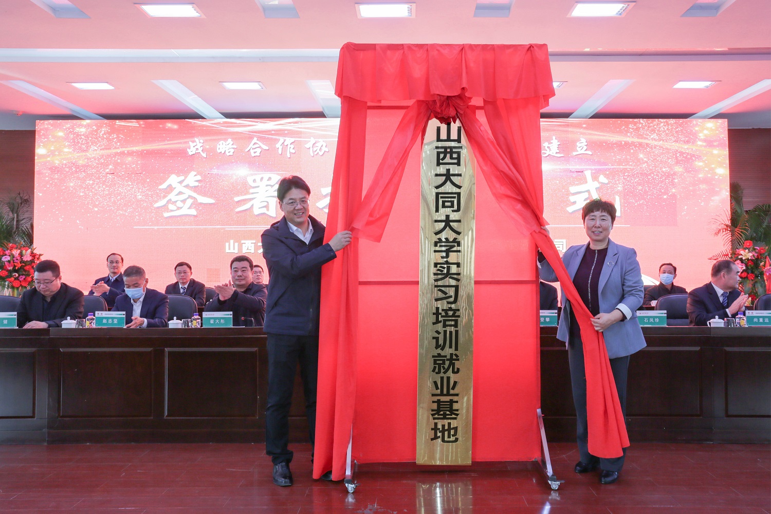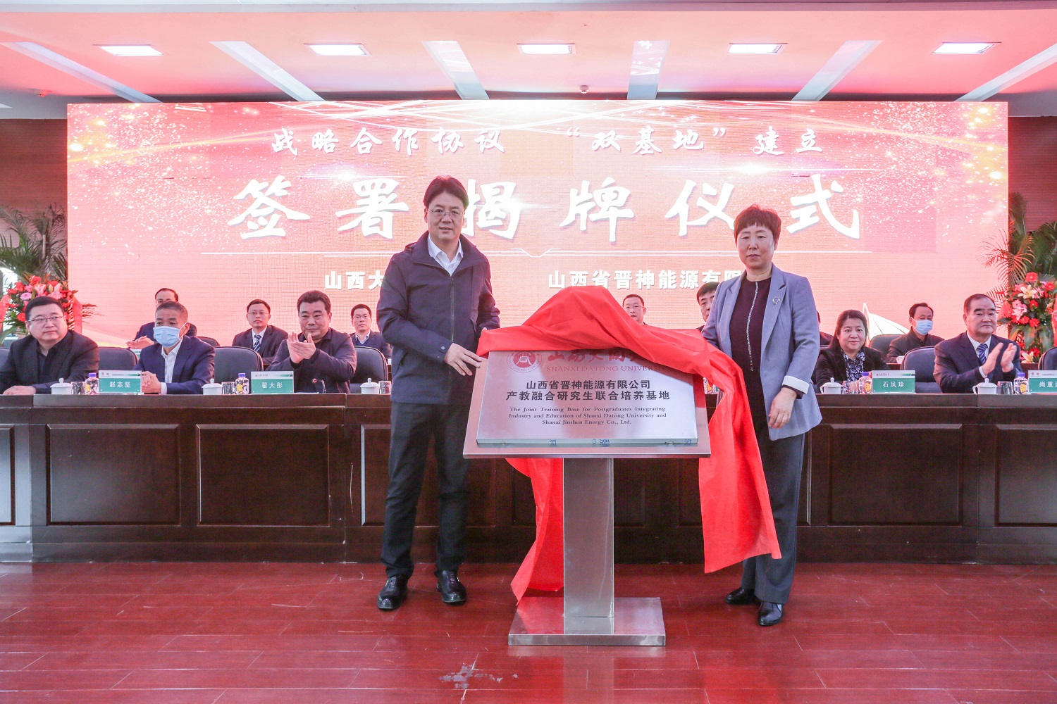 姚麗英、黃華共同為“山西省晉神能源有限公司產(chǎn)教融合研究生聯(lián)合培養(yǎng)基地”和“山西大同大學(xué)實(shí)習(xí)培訓(xùn)就業(yè)基地”揭牌。