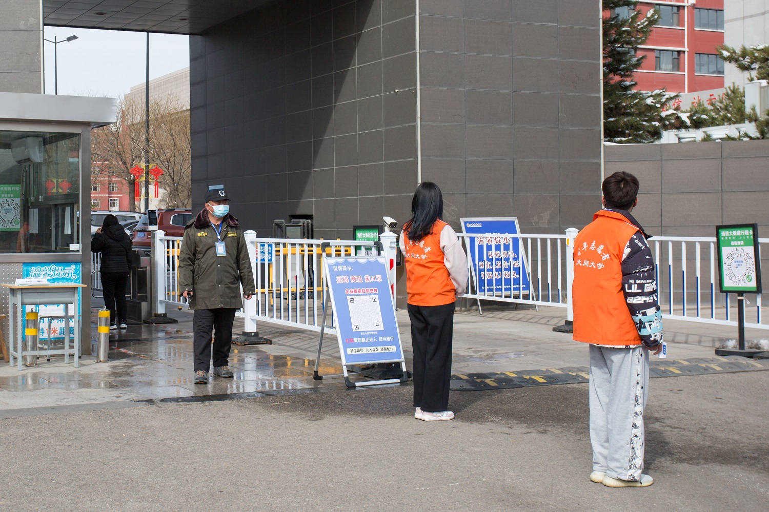 嚴格值守制度,加強門禁管理。保衛部將工作重心放到南、中兩校區的大門防守上,嚴格執行24小時校園值守制度,實行嚴格的門禁管理和檢查制度。保安人員始終保持戰疫狀態,嚴禁校外人員和車輛進入校園,嚴格檢驗進出校園人員身份,認真檢測體溫,嚴格查驗健康碼、行程碼和核酸檢測陰性結果證明,及時勸導未佩戴口罩的人員,耐心勸返無關人員,確保無教職工搭載學生出校的現象,以快速、全面、精準、有效為工作原則,堅守崗位,主動擔當積極作為,嚴守校園疫情防控第一道防線,筑牢校園疫情防控堅實壁壘。他們堅毅的身影是同大冰雪中最美的風景線,也是每一個同大人心中的‘定海神針。