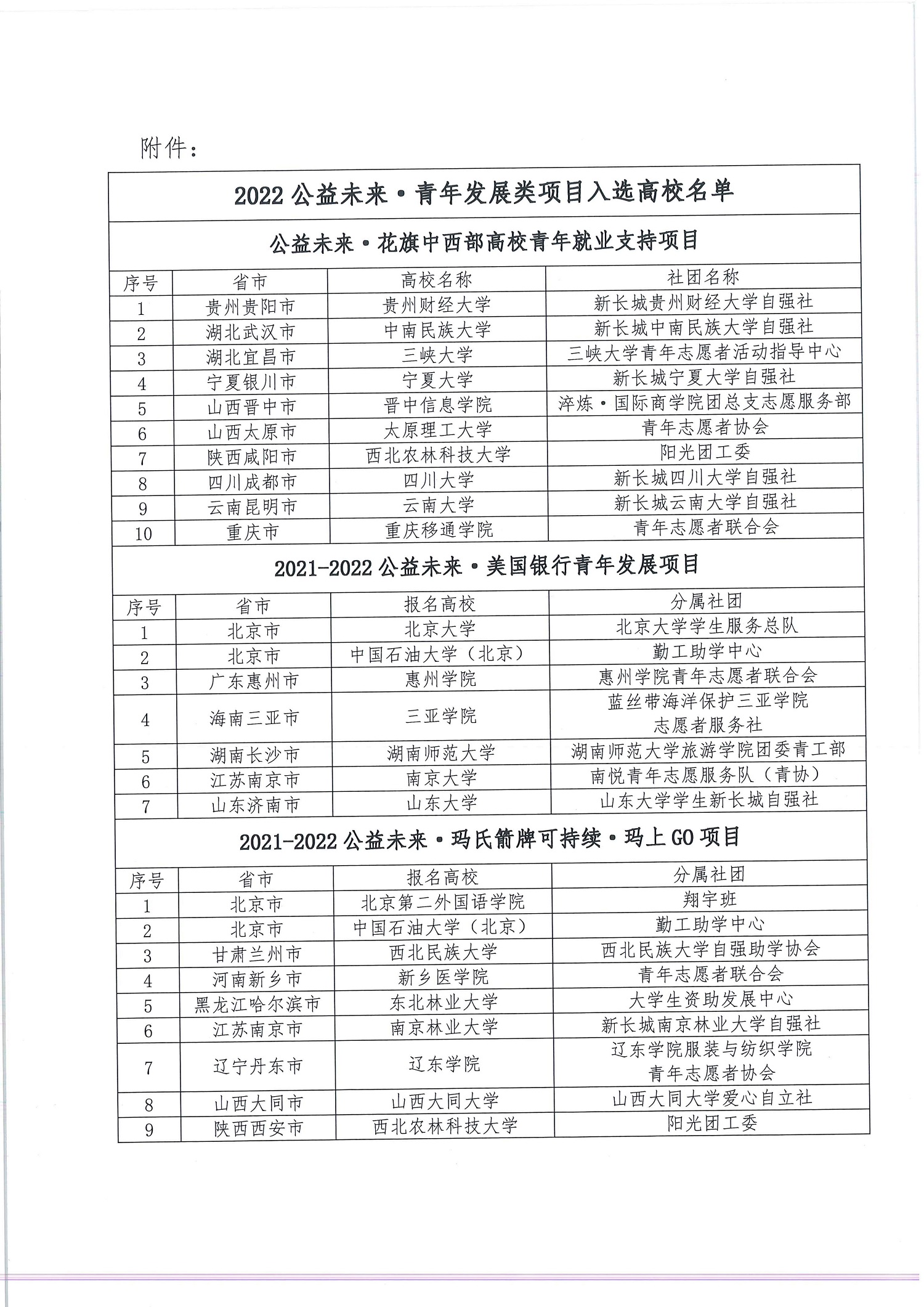 中國(guó)扶貧基金會(huì)今年共收到來(lái)自全國(guó)30個(gè)省(自治區(qū)、直轄市)、360所學(xué)校、457個(gè)學(xué)生社團(tuán)的申請(qǐng)。經(jīng)過(guò)數(shù)月的申報(bào)準(zhǔn)備與待審工作,公益未來(lái) · 青年發(fā)展類項(xiàng)目組綜合社團(tuán)實(shí)力、既往合作經(jīng)驗(yàn)、學(xué)校支持力度等因素最終確定26所高校社團(tuán)入選名單。其中山西省共有3所高校項(xiàng)目申報(bào)成功,我校申報(bào)的青年環(huán)保包裝創(chuàng)新項(xiàng)目位列其中。