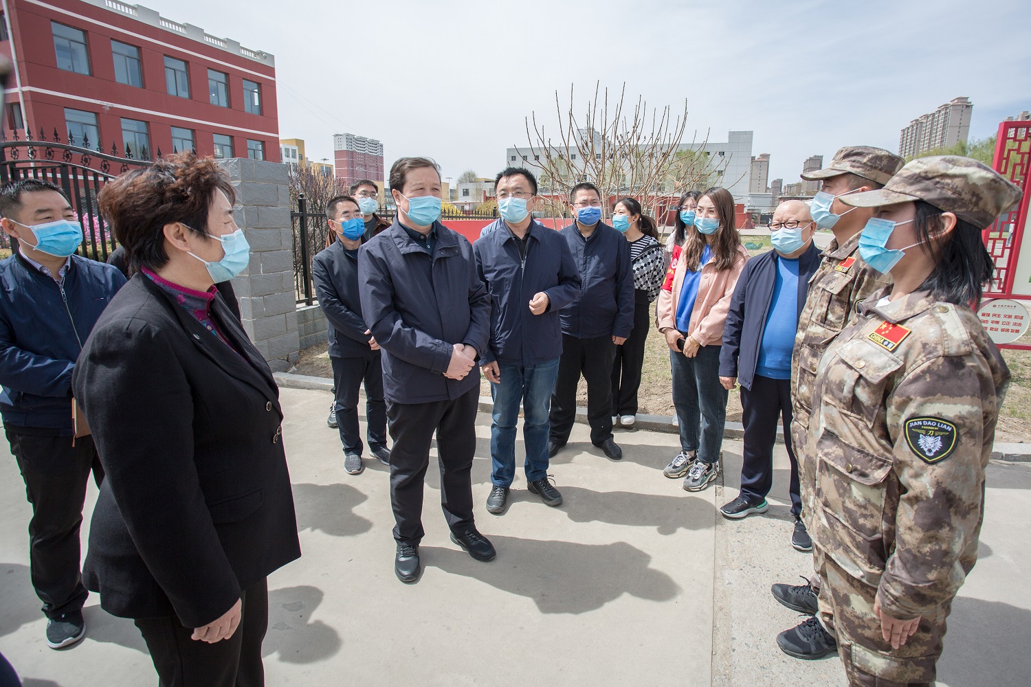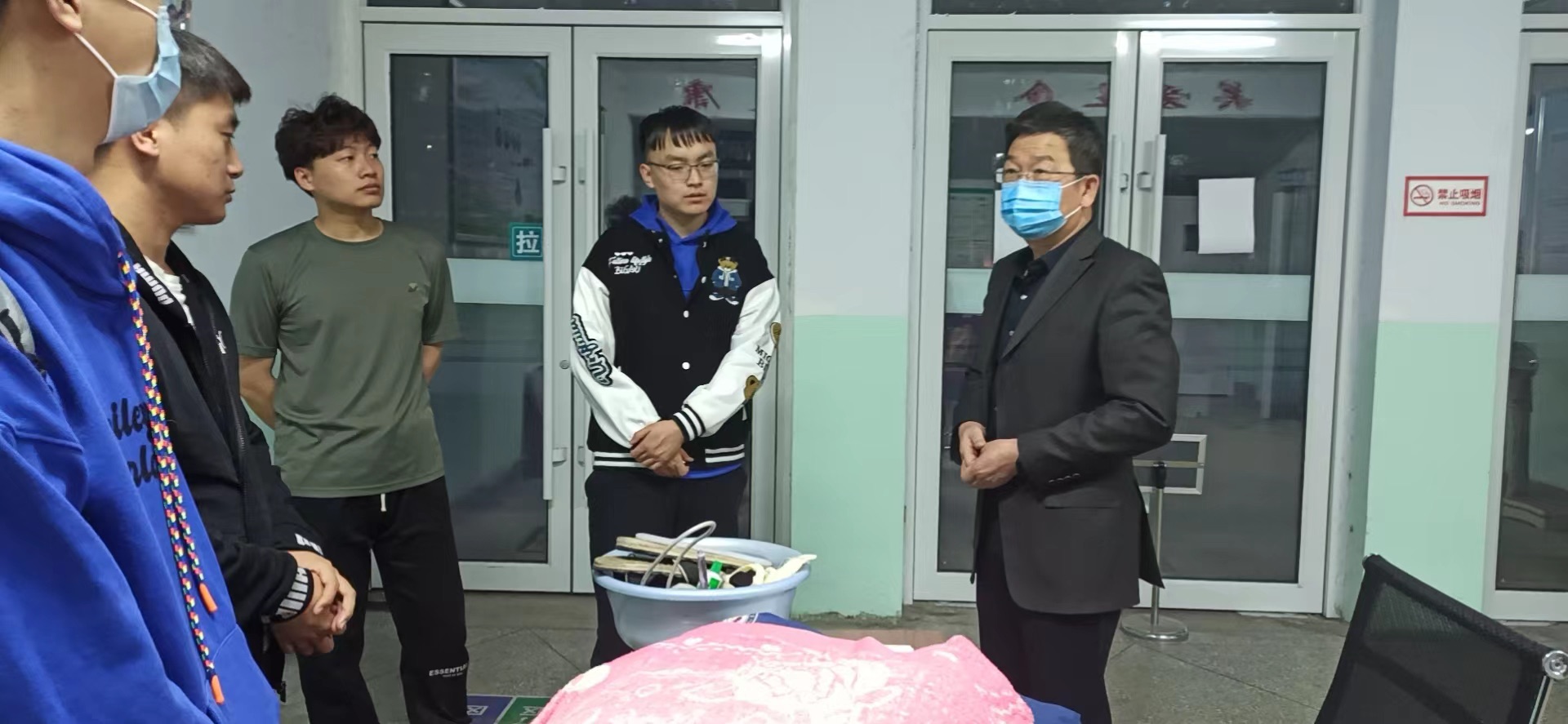 值得一提的是,在走訪慰問途中,領導們還偶遇了一支“特別”的防疫志愿小分隊——由全校退伍大學生組成的志愿服務團隊。領導們與同學們親切交流,贊賞之情溢于言表。弓永華對大家主動請纓、奮勇擔當、退伍不褪色的軍人本色表示由衷的稱贊,稱之為大同大學的“鋼鐵長城”,并勉勵大家更積極地參與到學校管理中來,在疫情防控、新生軍訓、公寓管理、校園治安等各項工作中發揮重要作用、綻放青春光芒。