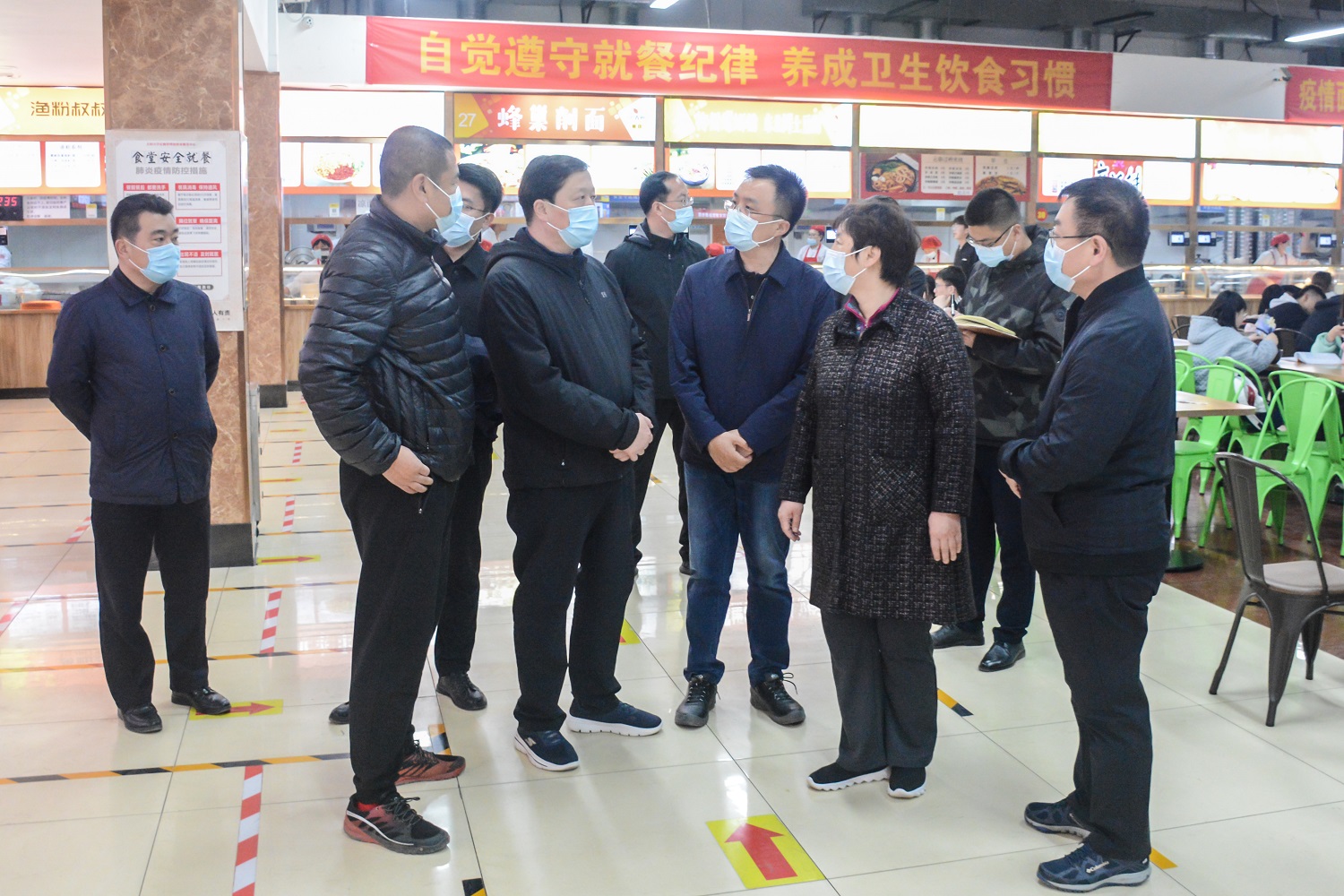 在音樂學院,領導們查看了學院文化氛圍營造、“第二課堂”開展情況,對“音樂角”的創意給予贊賞。弓永華表示,要將音樂學院的“第二課堂”推廣到全校去,音樂學院的師生要廣泛深入到其他學院、班級中開展聲樂教學,以此陶冶全校師生的審美情操和藝術修養。在校醫院,領導們詳細了解了防疫物資儲備、醫護力量配備、床位配比設置等,就開展抗原檢測、加強藥品和防疫物資儲備等作出明確指示。在食堂,弓永華強調,生活保障無小事,要嚴格把關食材來源,做好環境抽樣檢測,確保餐飲安全。要根據師生需求,不斷提高菜品質量,適當延長服務時間,以入微服務體現餐飲人的勤勉奉獻。他要求后勤部門要定期排查安全隱患,加快老舊食堂改造修繕進度,保證生產生活安全萬無一失。