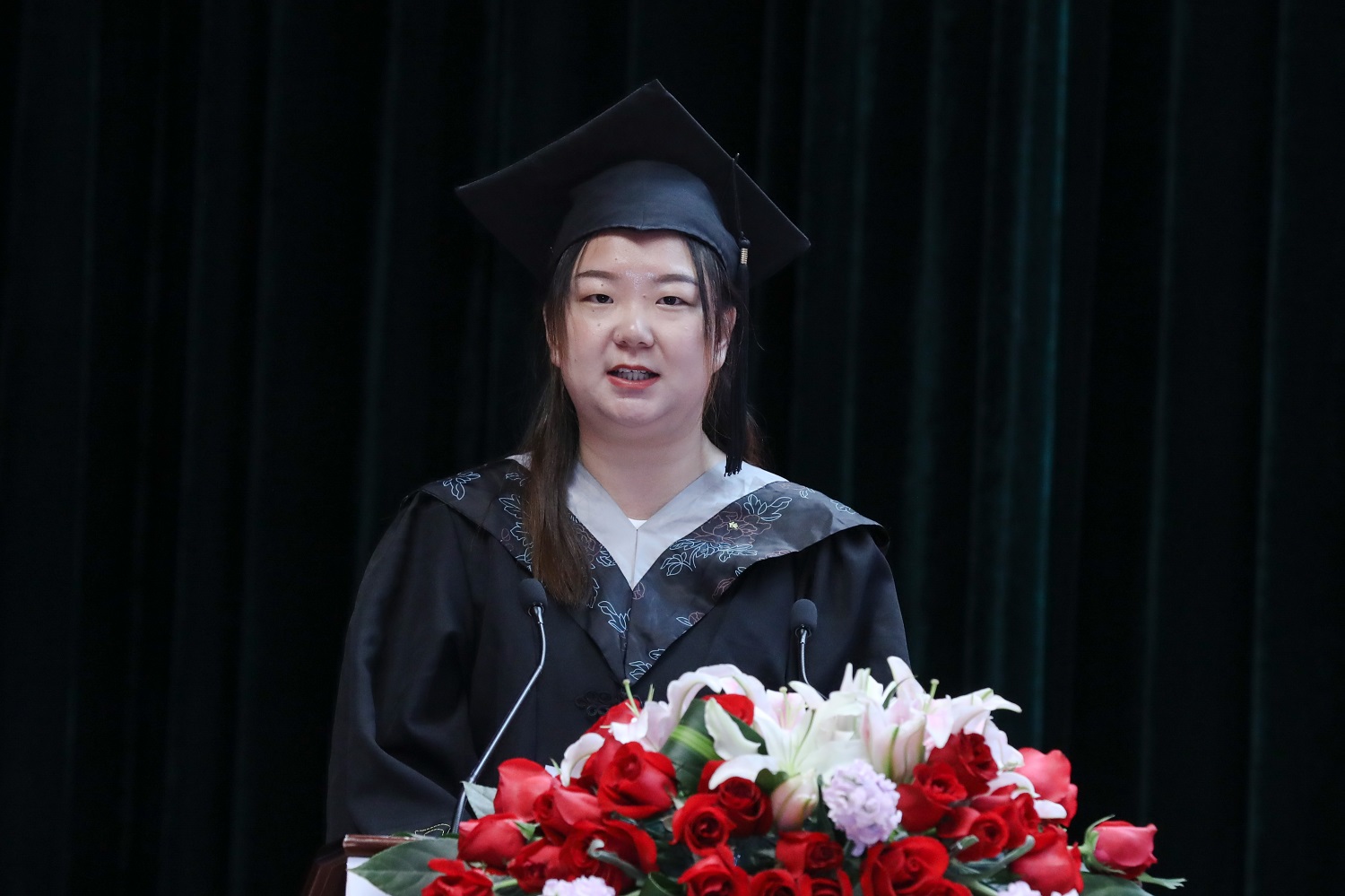 畢業生代表、化學與化工學院閆彥同學代表全體畢業生表達了對母校的真誠感謝和無限眷戀,道出了大家的共同心聲:時刻銘記同大“厚德、博學、慎思、篤行”校訓,永遠做一名自強不息的同大人,用扎實的專業學識和深厚的人文情懷去實現夢想,以優異成績回報母校、回報社會、回報黨和祖國。