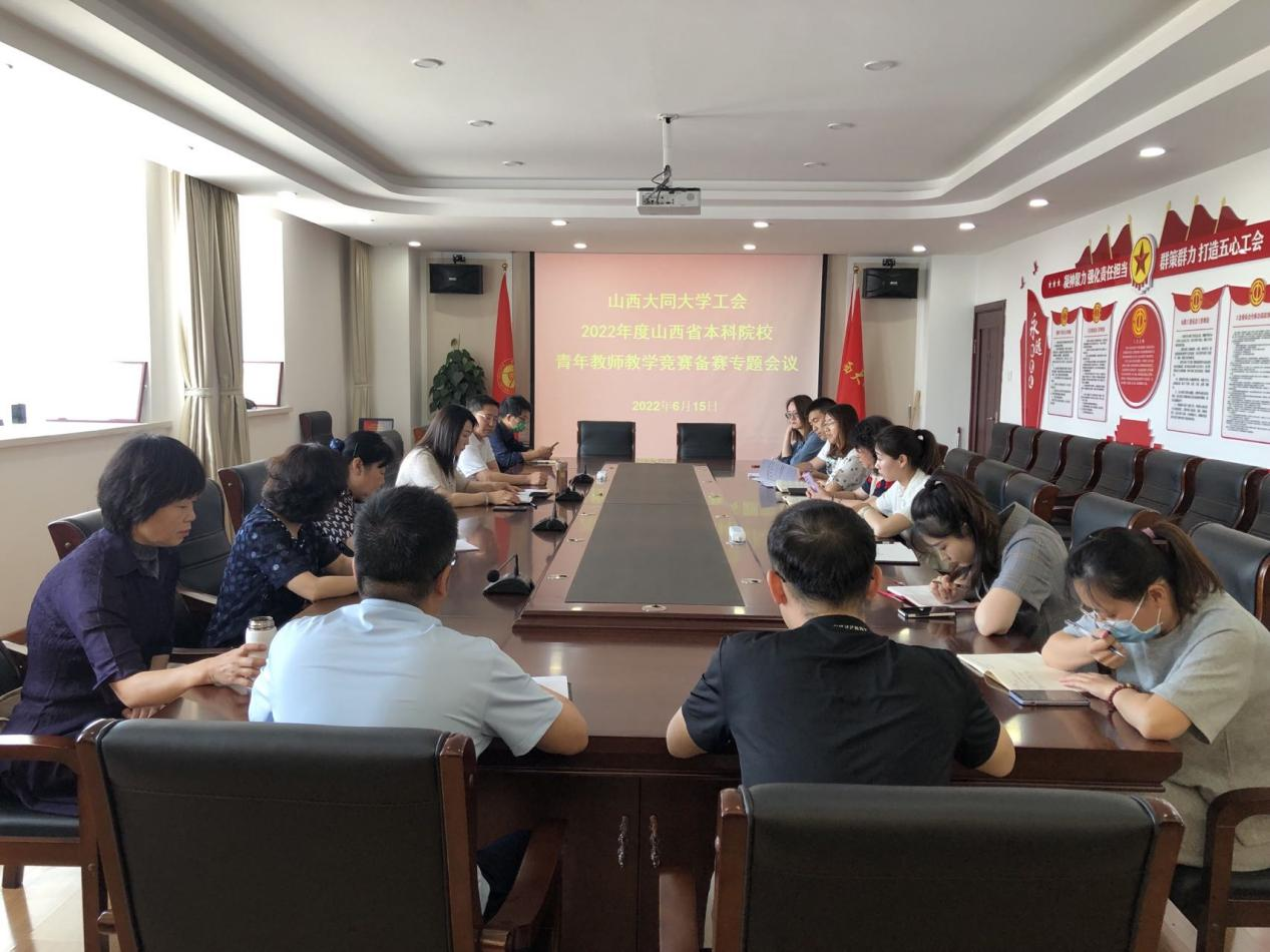 6月15日上午,校工會2022年度山西省本科院校青年教師教學競賽備賽專題會議在行知樓14層工會會議室舉行,校工會主席侯桂蘭、往屆山西省青教賽獲獎選手、競賽評委、本屆省青教賽5名備賽選手及校工會全體工作人員參加了會議,會議由侯桂蘭主持。