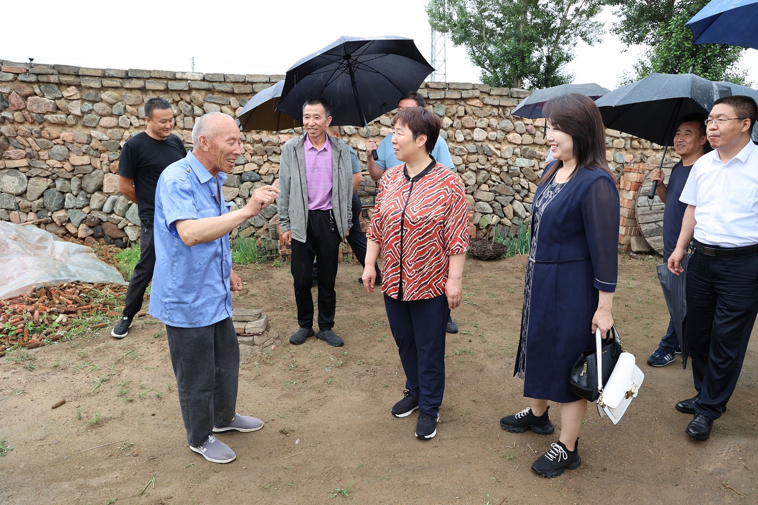 姚麗英一行首先來到鎮門堡村,在村級組織活動場所,姚麗英代表學校為村民捐贈了音響設備,希望以此豐富村民的娛樂文化生活。隨后,領導們冒雨走訪了鎮門堡村、七墩村的幫扶對象,為他們送上慰問品。“收入如何、身體怎么樣、對我們的幫扶工作有什么建議……”姚麗英與村民們親切交談,事無巨細地詢問他們的生活情況,表示學校會進一步加大幫扶力度,帶動村民增收致富,共同創造更加美好的生活。村民們歷數著大同大學的各種幫扶政策,對學校的幫扶工作給予高度贊揚,對黨和政府以及大同大學的感激之情、對未來美好生活的憧憬之情溢于言表。