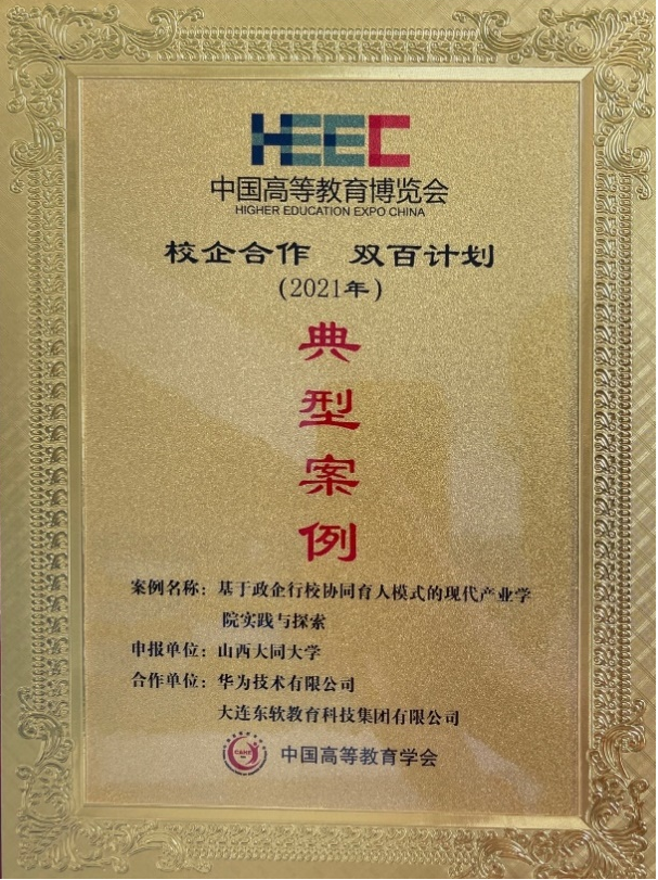 會議為包括我校與清華大學、華北理工大學、南開大學等在內的260個2021年度中國高等教育博覽會“校企合作雙百計劃”典型案例頒發獎牌。校黨委副書記、校長姚麗英,校黨委常委、副校長翟大彤、教務部、計算機與網絡工程學院負責人等出席了頒獎典禮。