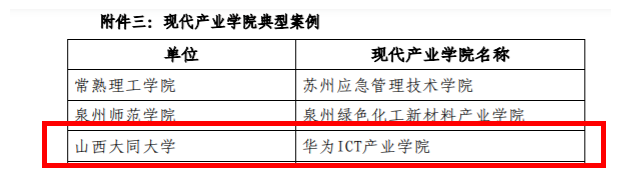 其中我校計算機與網絡工程學院教學團隊申報的“山西大同大學華為ICT產業學院”被評為2022年現代產業學院建設典型案例,是山西省唯一入選案例。該案例是學院幾年來深入總結現代產業學院的工作經驗和好的做法,進一步提升產教融合水平,彰顯示范與引領作用方面取得的階段性成果。
