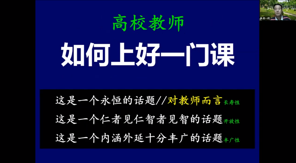 龍洋教授講解了一堂好課的“十個”標準;一堂好課的“六種”風格;從自身的課堂經驗出發,分享作為高校新教師如何上好第一堂課。