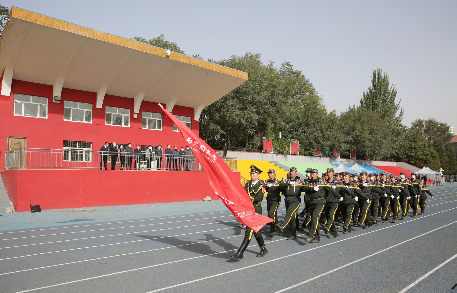 十月的學(xué)校,金風(fēng)送爽,彩旗獵獵,嘹亮的解放軍進(jìn)行曲響徹四方,鮮艷的國旗高高飄揚(yáng)。經(jīng)過了意志和紀(jì)律的考驗(yàn),經(jīng)過了體力和毅力的錘煉,經(jīng)過了汗水和淚水的洗禮,10月8日上午9時(shí),我校2022級(jí)新生軍訓(xùn)成果展示活動(dòng)在御東校區(qū)和新平旺校區(qū)同時(shí)展開。由于受到疫情的影響,上級(jí)主管部門明確要求不搞軍訓(xùn)匯報(bào)表演活動(dòng),我校依據(jù)上級(jí)的指示精神,今年軍訓(xùn)活動(dòng)結(jié)束后不舉辦大型的匯報(bào)表演,各營在各自的軍訓(xùn)場(chǎng)地展示軍訓(xùn)成果,不搞集中展示、不準(zhǔn)人員聚集。御東校區(qū)在學(xué)生訓(xùn)練的南、北校區(qū)操場(chǎng)進(jìn)行展示活動(dòng),校黨委書記趙水民、黨委副書記寇福明在御東校區(qū)隨機(jī)巡視觀摩了部分學(xué)院的軍訓(xùn)成果;新平旺校區(qū)在學(xué)生訓(xùn)練場(chǎng)地操場(chǎng)舉行活動(dòng),校黨委副書記、校長(zhǎng)姚麗英,校黨委常委、副校長(zhǎng)張旻巡視觀摩了新平旺校區(qū)的成果展示活動(dòng)。
