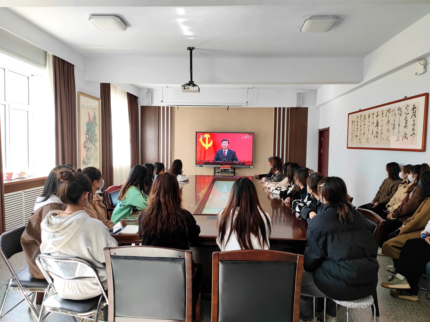 ?????? 10月23日,中國共產(chǎn)黨第二十屆中央委員會第一次全體會議新選出的中央政治局常委同采訪中共二十大的中外記者見面。見面會上,習(xí)近平總書記發(fā)表重要講話。我校校院兩級黨委理論學(xué)習(xí)中心組和各學(xué)院、部門、黨支部采取集中和分散相結(jié)合的方式,認(rèn)真組織黨員干部和師生員工收看見面會直播盛況,深入學(xué)習(xí)習(xí)近平總書記重要講話,進(jìn)一步在全校范圍內(nèi)掀起學(xué)習(xí)貫徹黨的二十大精神的高潮。