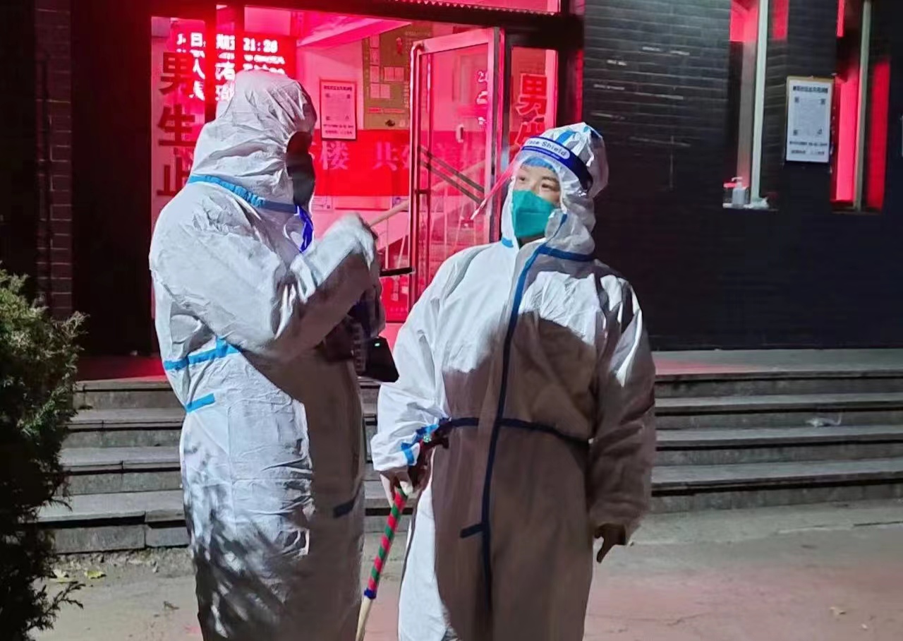 數學與統計學院黨委副書記李磊,從10月11日進校后便積極投身學校各項抗疫工作,數據統計、網格化管理、物資保供,有需要的地方就有他的身影。“一想到在這非常時期能給同學們實實際際的幫助,渾身上下就充滿了力量。”李磊如是說,這是一名學生工作者最真情的“告白”。“我們的城市依然在靜默,弟弟已經進校,年邁的父母讓我很是牽掛,但得知學校發生疫情,我心急如焚,始終惦念著我的學生。”李磊的姐姐、商學院團委書記李箐說到。到校后的第二天,她被安排到高風險區如月苑三號樓開展工作,安撫學生情緒、搬運物資、清理生活垃圾,背著三四十斤的消毒水箱在五層樓上不斷穿梭……女本柔弱,為“師”則剛!不畏勞累不懼危險,此時此刻,保學生安全、護學校平安是她最大的心愿。