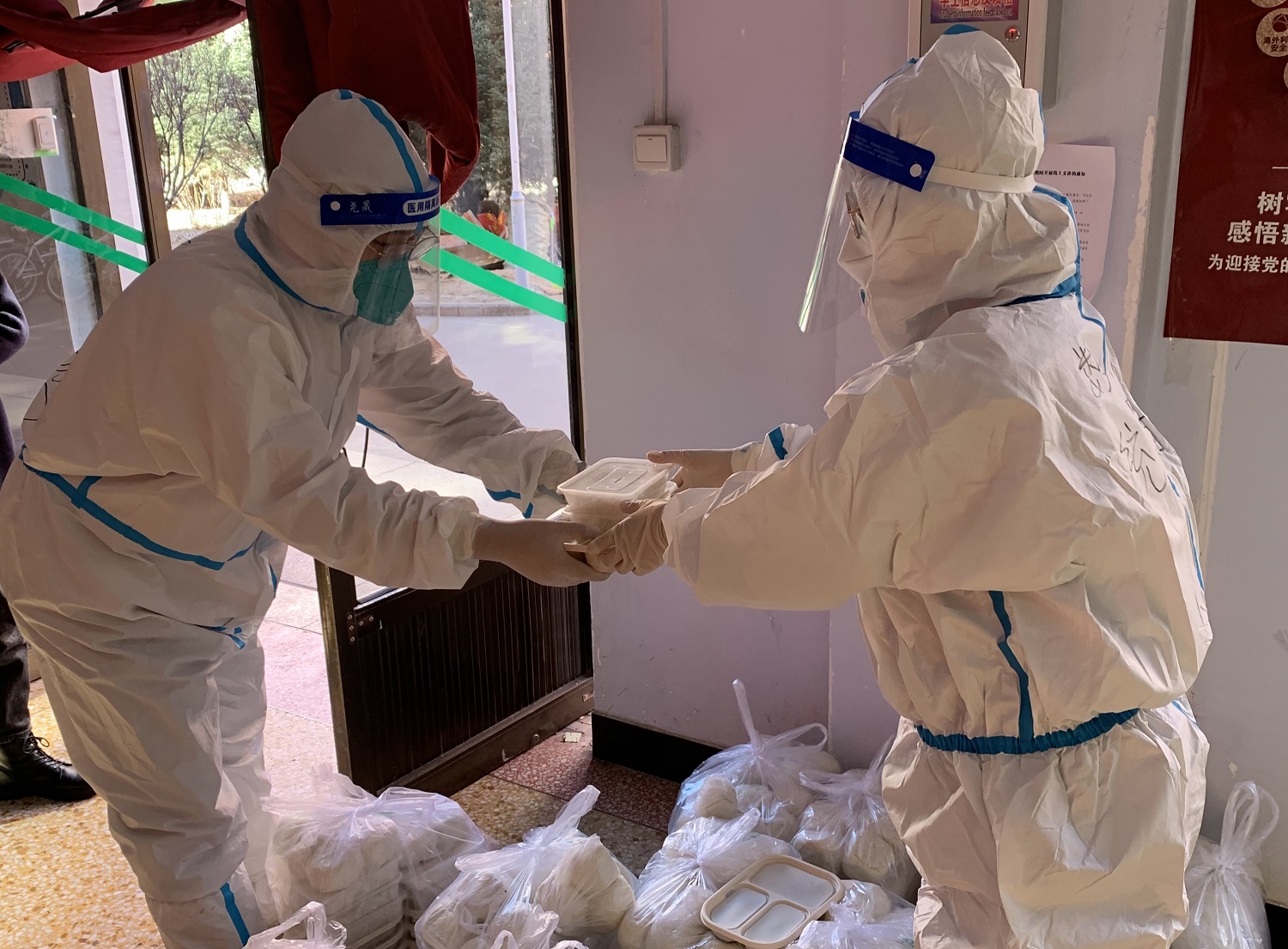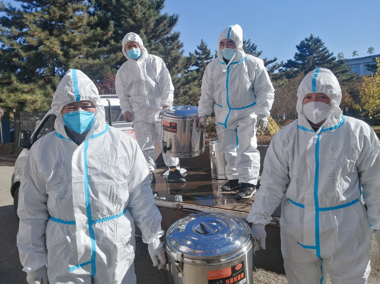 10月11日,在接到學校通知后,后勤管理部部長魏彪和云岡學學院執行院長李珍梅夫婦連夜進校,迅速投入到抗疫工作中。后勤保障是學校穩定發展的“壓艙石”,特別是學校發生疫情后,三萬人的吃穿住用就是頭等大事,壓力巨大,責任巨大。飲食供應、公寓管理、日常維修、垃圾清運,魏彪奔忙于多條戰線上,不分晝夜、全天候運轉,最忙的時候,連合一下眼、吃一口飯、喝一杯水都是奢望,但不論多忙多累多危險,他都毫無怨言,因為他深知背后是同大幾萬師生的生命健康,容不得半點馬虎和絲毫懈怠。
