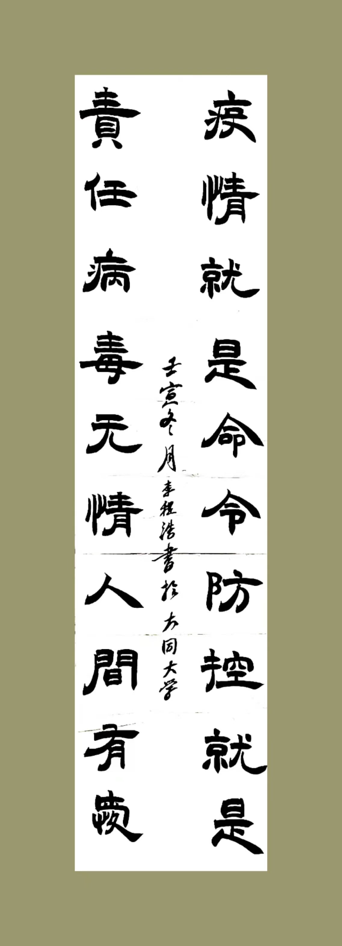 為同心戰疫,鼓舞士氣,美術學院師生連日來以墨抒懷,創作出大量優秀抗疫書法作品,希望通過翰墨傳遞溫暖,凝聚力量,共抗疫情,致敬抗疫一線的最美逆行者!校園網編輯部從這些書法作品中擇選出14幅以饗讀者。
