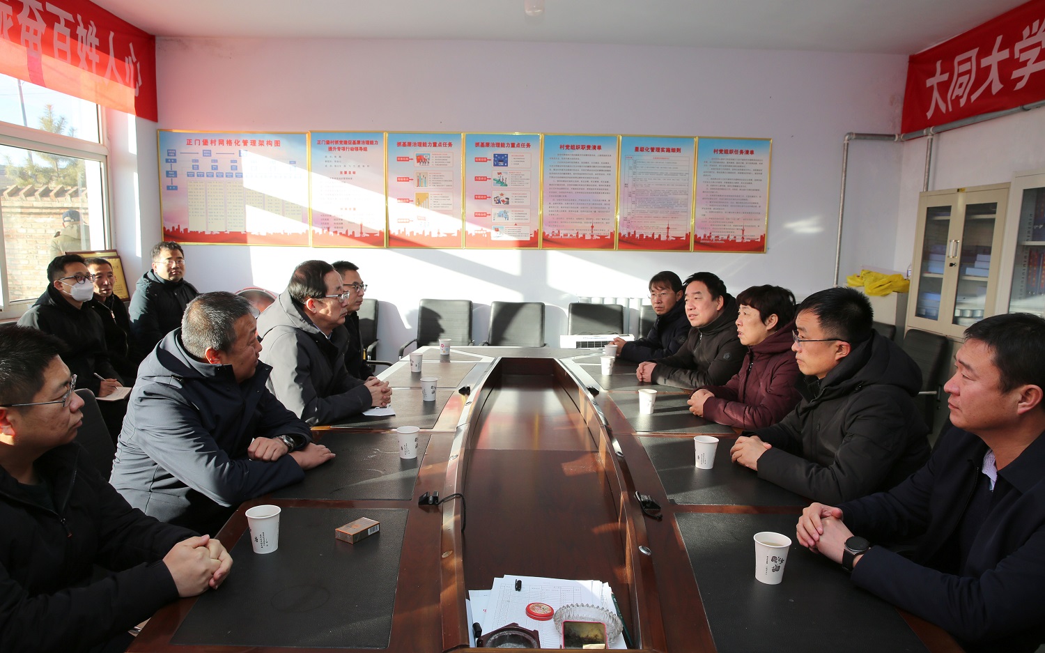 在鎮門堡村委會,姚麗英組織召開了調研座談會。姚麗英對駐村工作隊一年來的幫扶工作給予肯定,她指出,助力鄉村振興是黨和人民交給我們的使命與任務,工作隊要始終站在政治責任的高度,將學校的各項幫扶政策落實到位,配合縣鄉兩級政府做好鄉村振興工作。王崇虎代表陽高縣委感謝大同大學長期以來的幫扶,希望雙方繼續深化合作,推動鄉村振興走深走實,攜手走出校縣共贏發展特色新路。雙方就校縣合作、消費扶貧、人才交流、產學研融合等方面進行了深入探討交流,達成了重要共識。