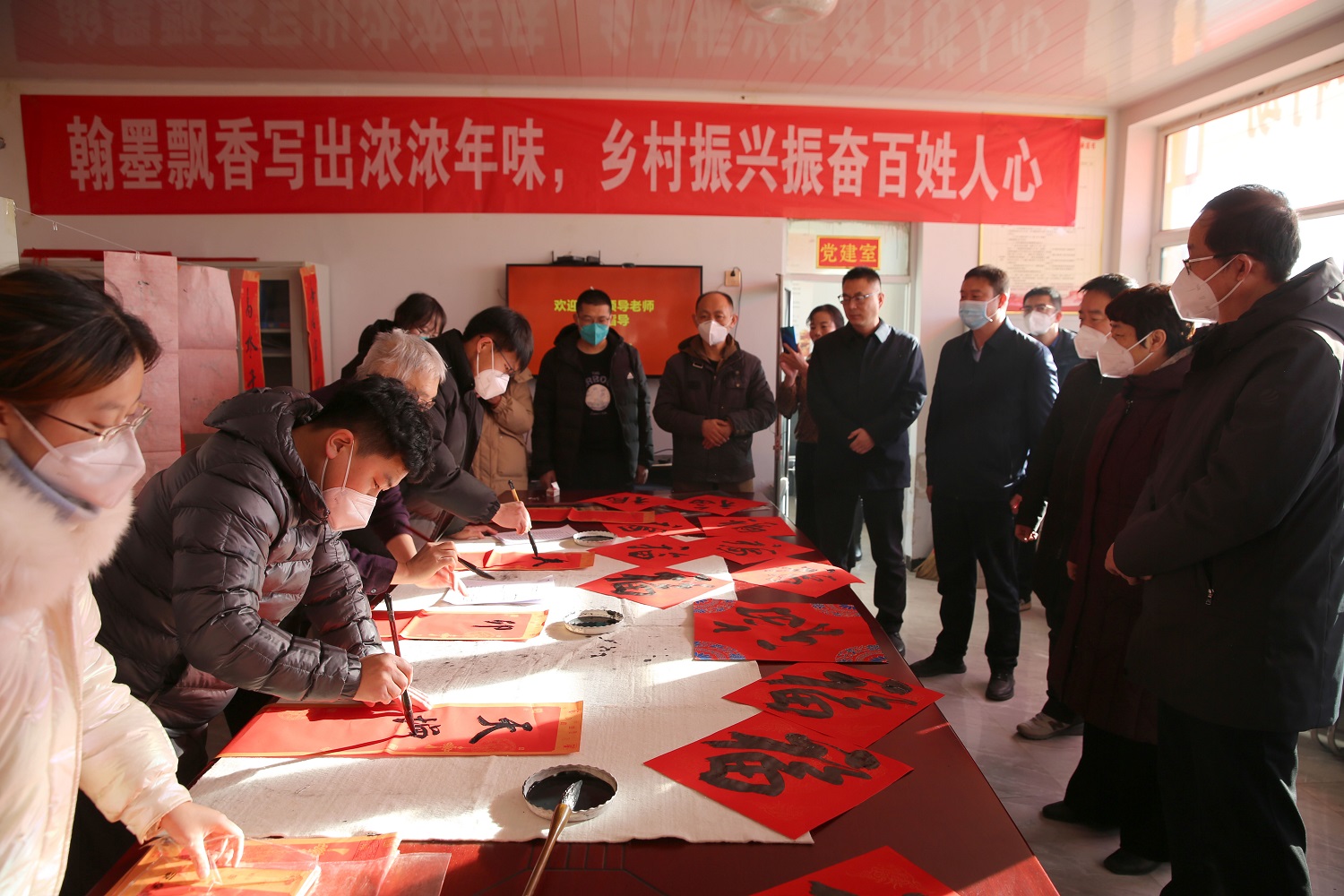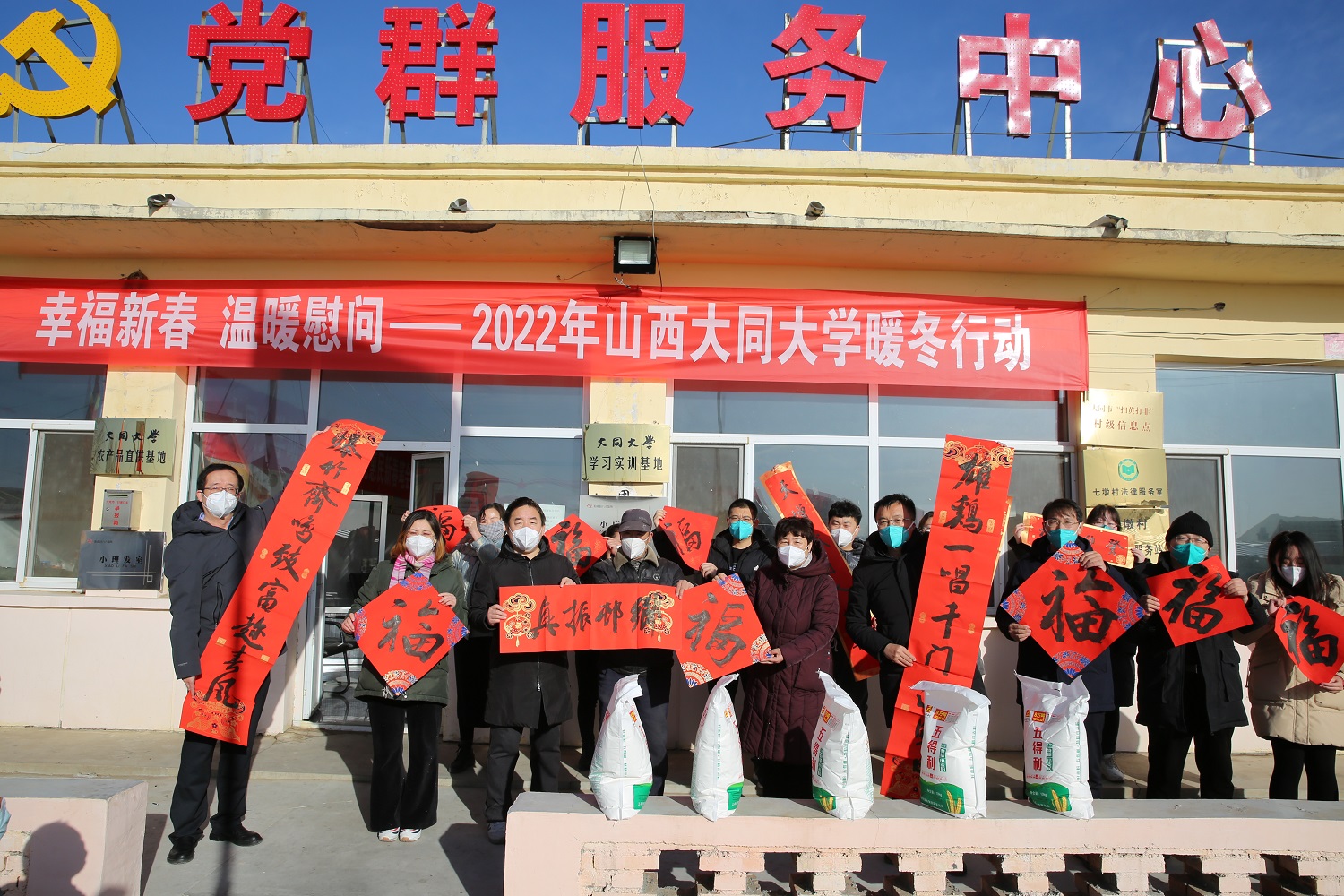 為了讓村民們過一個更加歡樂祥和的春節,學校加大投入,為幫扶的6個村共計1050戶村民配發白面,向幫扶村愛心超市捐贈4萬元。除此之外,特地組織“大同大學助力鄉村振興文化惠民新春筆會”,由美術學院書法專業的師生現場書寫“福”字和春聯,將浸潤著翰墨書香的濃濃年味和新春祝福送到每一戶村民家中。