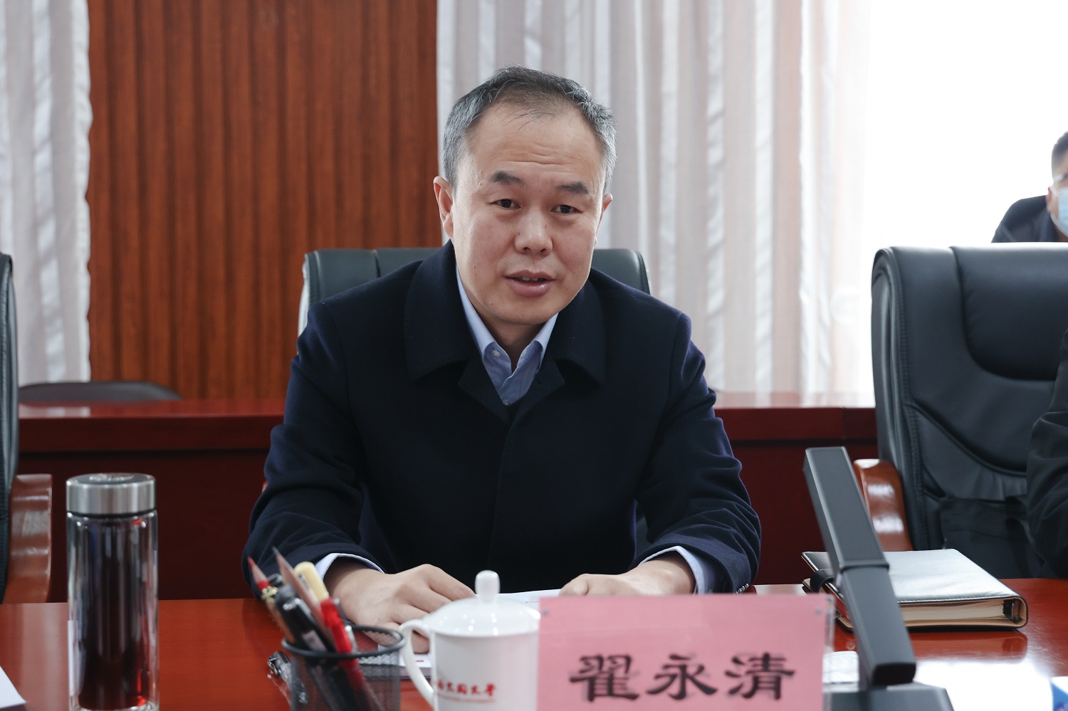 趙水民代表學校向翟永清一行表示歡迎,向大同市委市政府一直以來對學校的關懷與支持表示衷心感謝,特別是在學校發生疫情后,大同市委市政府給予了全方位、無條件、最大限度的支持,成為我們抗擊疫情的堅強后盾。趙水民表示,大同大學在大同市建校、立校、興校,與這座城市有著不可分割的聯系,學校將堅持以“小切口”撬動“大戰略”、以“小改革”推動“大合作”、以“小身段”贏得“大發展”,致力于同大同市開展全方位、多角度、深層次的合作,一起搶抓發展機遇,積極融入新發展格局,力爭打造校地深度融合“命運共同體”,共同為推動山西省、大同市全方位高質量發展作出更大貢獻。