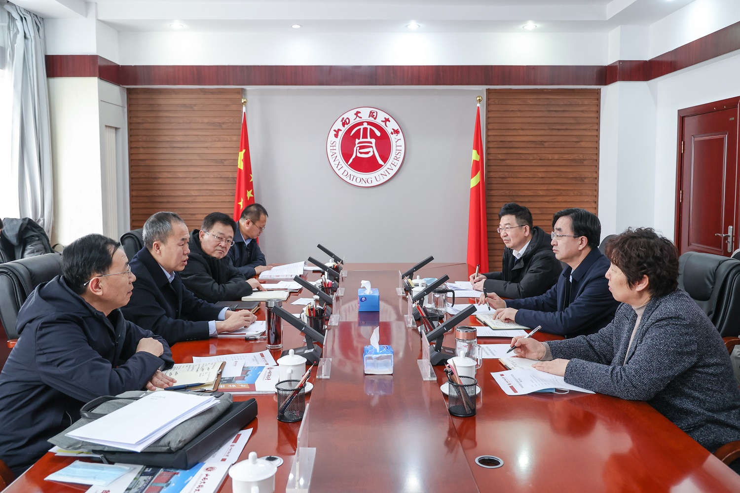 2月9日,大同市副市長翟永清一行來校調研,就學校基礎設施建設、校園周邊環境整治、持續深化校地合作等工作進行座談交流。校黨委書記趙水民,校黨委副書記、校長姚麗英,校黨委常委、副校長張旻出席調研活動。