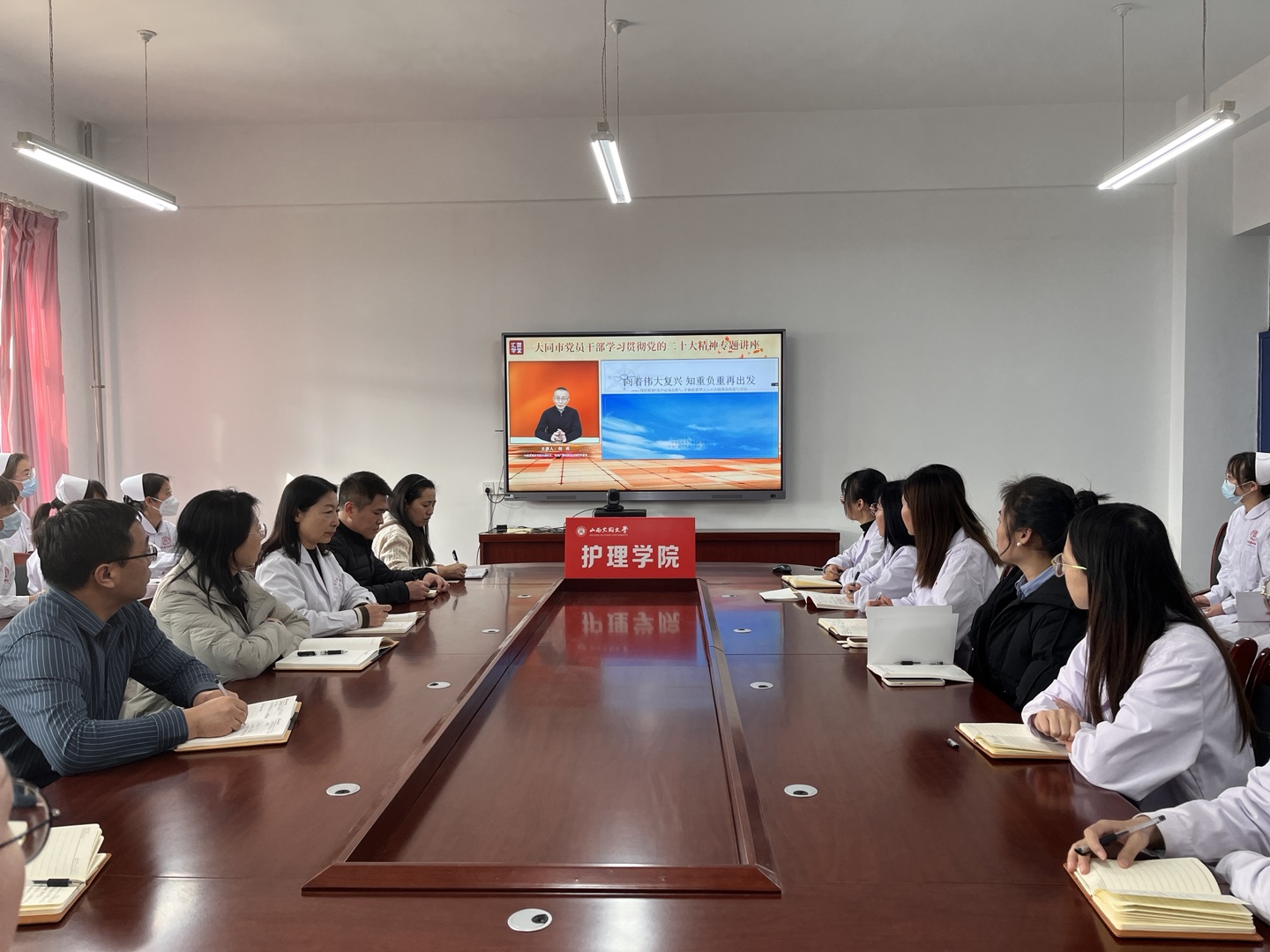 為深入學習宣傳貫徹黨的二十大精神,引導廣大師生切實將思想行動統一到黨的二十大精神上來,2月26日下午,學校組織全體師生黨員、科級以上干部收聽收看了大同市委組織部組織的黨的二十大精神專題講座。