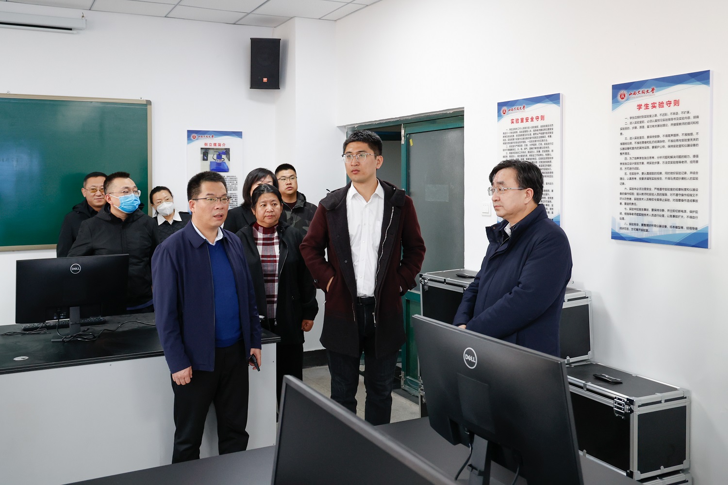 隨后,趙明一行深入御東、新平旺校區,參觀調研實驗室、實習實訓基地建設情況,就學校參與高速飛車項目的基本條件進行了實地考察。