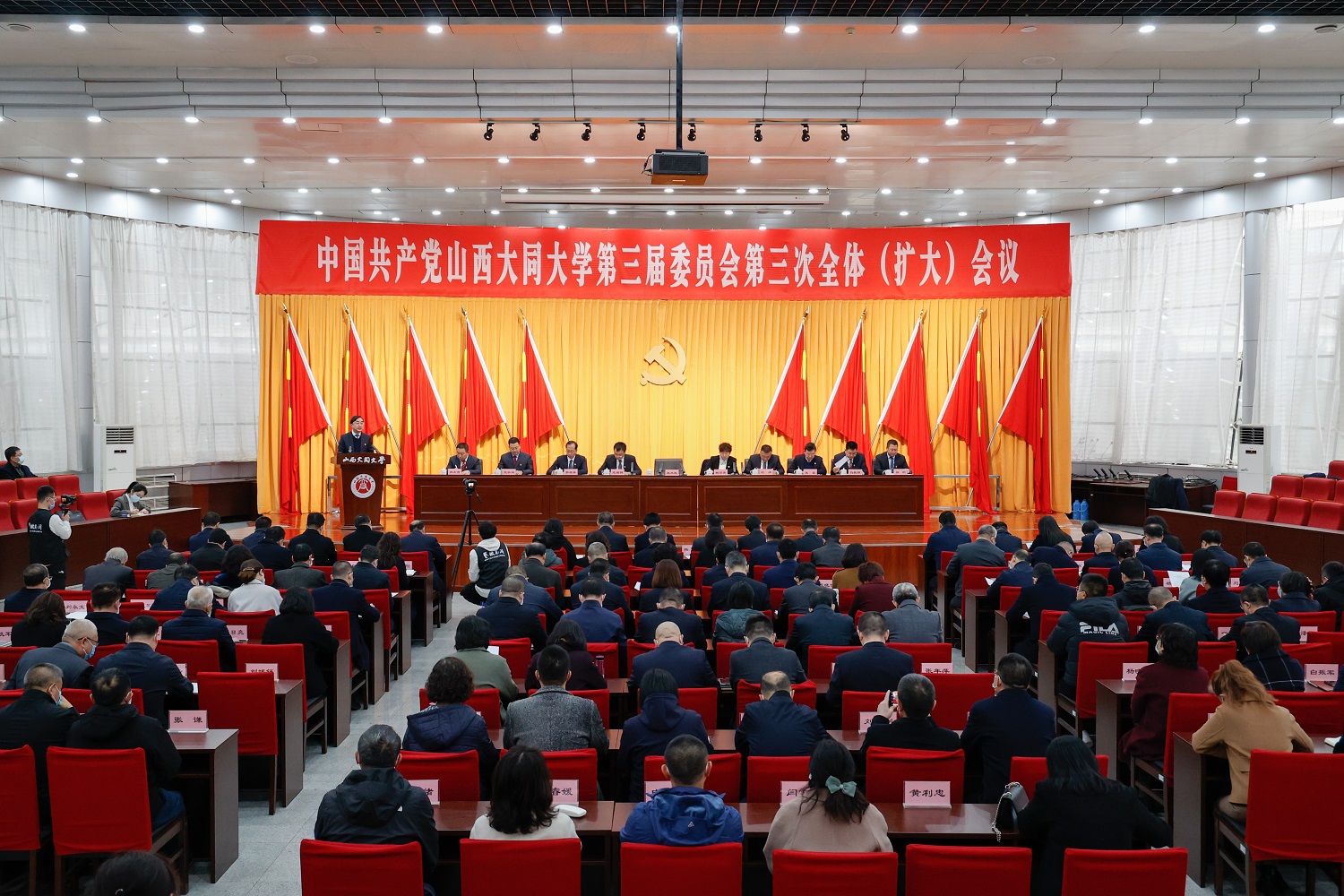 3月17日,中國共產黨山西大同大學第三屆委員會第三次全體(擴大)會議在慎思樓報告廳召開,會議的主要任務是:以習近平新時代中國特色社會主義思想為指導,全面貫徹落實黨的二十大精神,認真學習貫徹全國“兩會”精神,總結工作、分析形勢、表彰先進,研究部署學校2023年工作。校黨委書記趙水民主持會議并講話。校黨委副書記、校長姚麗英作2023年度工作部署。校黨委副書記寇福明主持表彰和目標責任書簽訂儀式。校黨委委員參加會議,校紀委委員、科級以上干部、系主任和各學院教師代表列席會議。