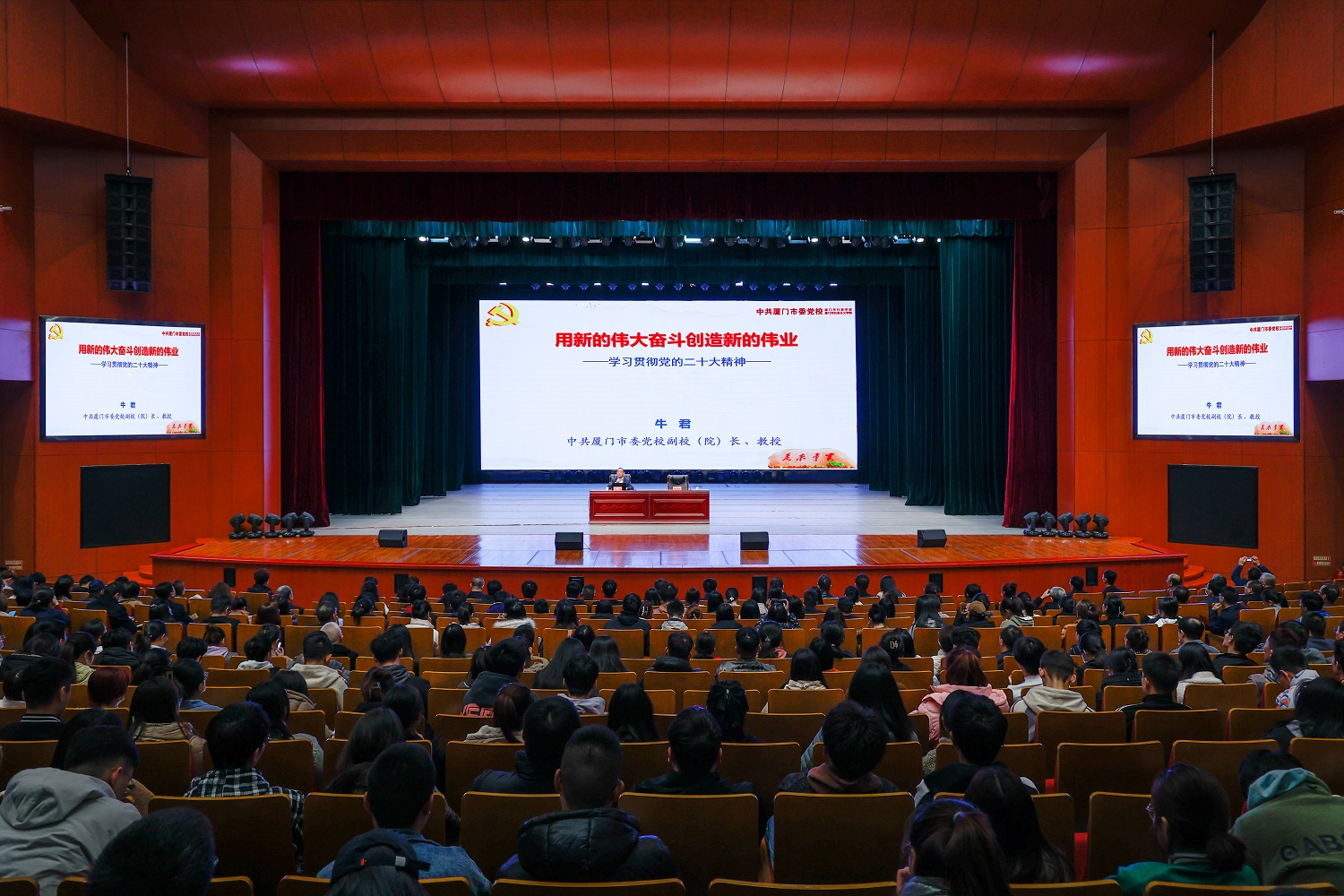 4月7日,我校召開黨委理論學習中心組(擴大)2023年第五次集體學習會議,深入學習黨的二十大精神。廈門市委黨校副校(院)長、教授、我校優秀校友代表牛君受邀作題為《用新的偉大奮斗創造新的偉業——學習貫徹黨的二十大精神》的專題講座。校黨委副書記寇福明主持會議。