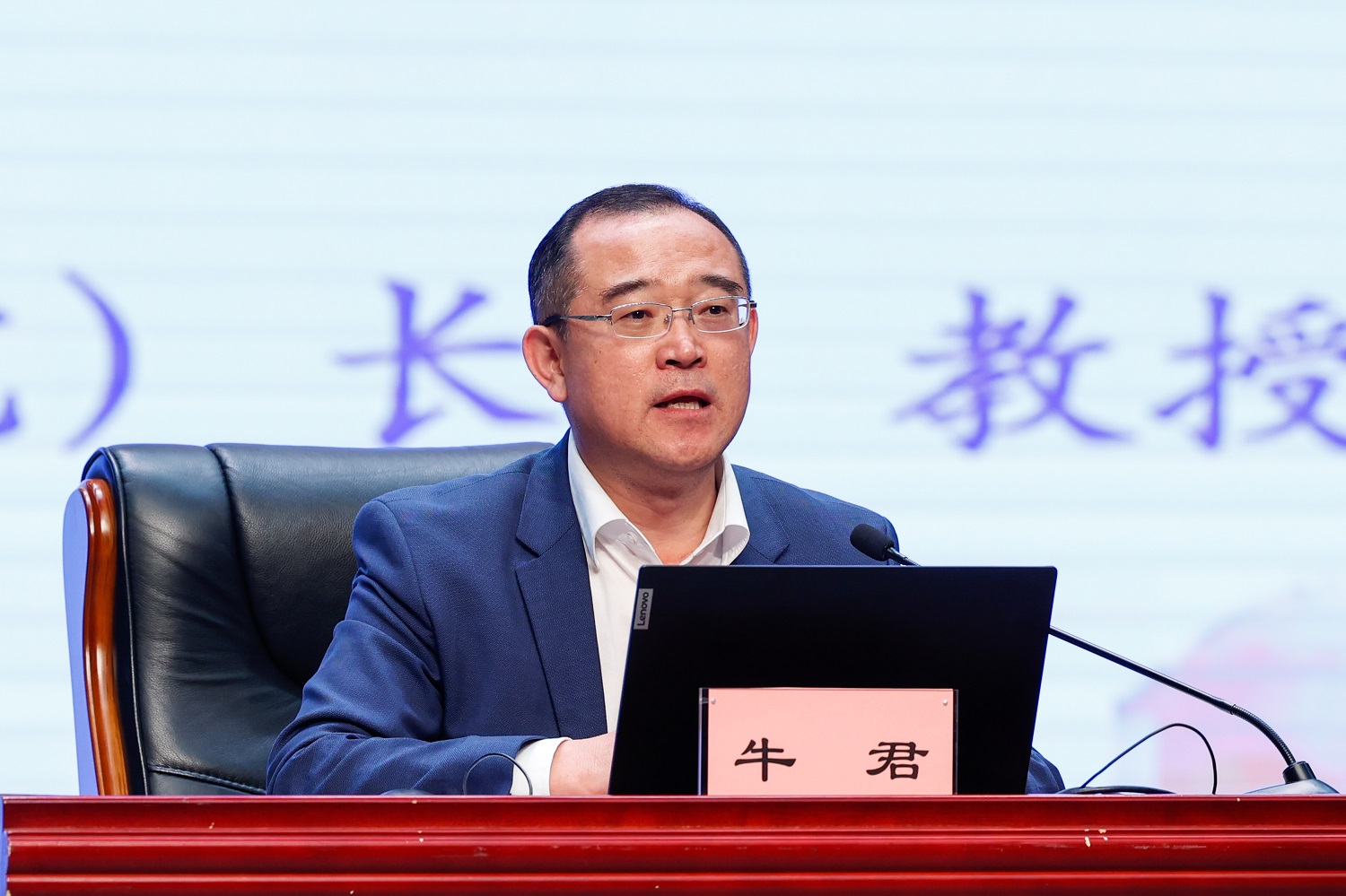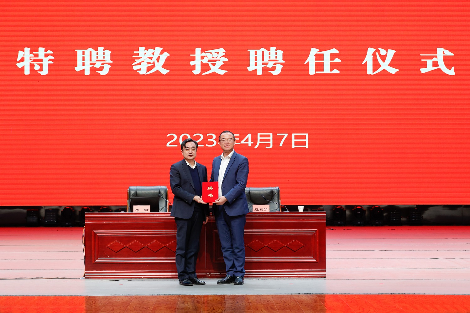 講座開始前,校黨委書記趙水民為牛君教授頒發聘書,聘任牛君教授為我校思政課特聘教授。