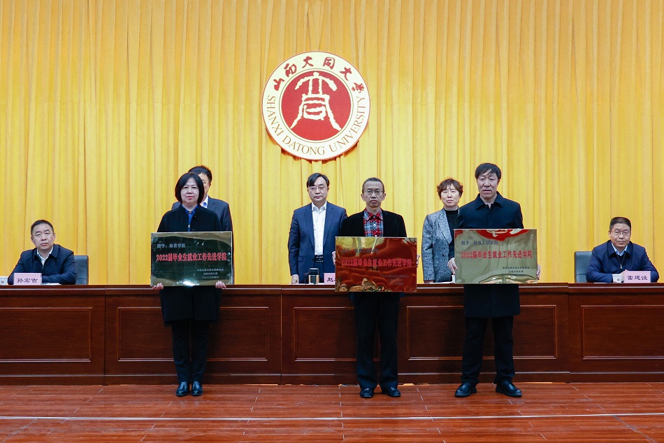 會議表彰了2022屆畢業生就業考核工作先進學院,并為煤炭工程學院、機電工程學院、體育學院等三個學院頒獎。