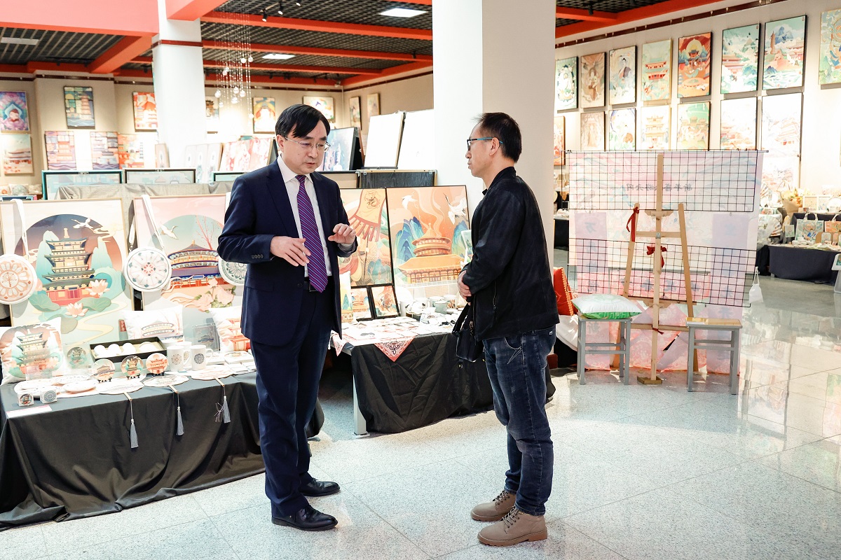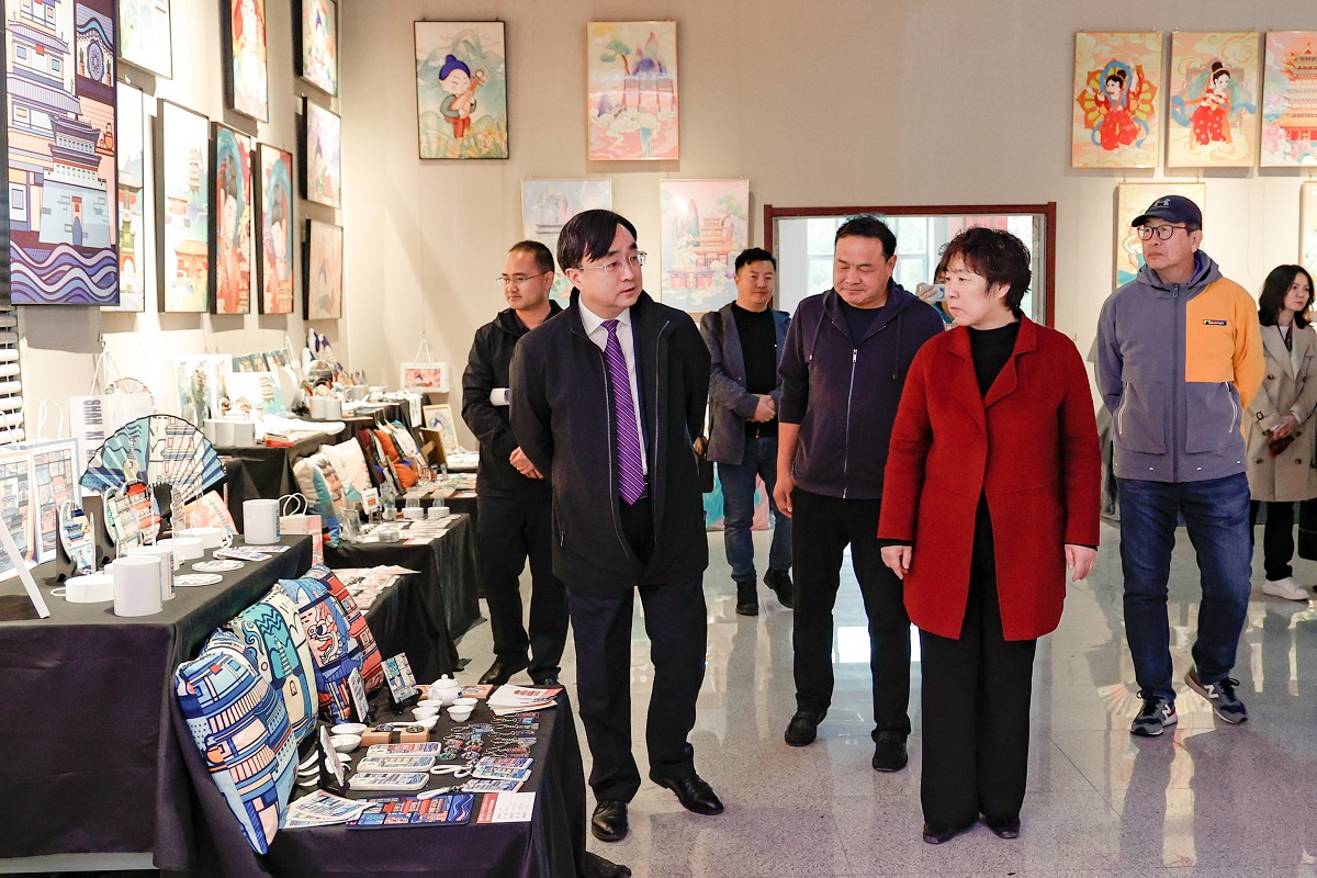 4月25日至5月28日,“盛世云岡——同大云岡文創(chuàng)作品展”在逸夫美術(shù)教學(xué)樓開(kāi)展。這是我校開(kāi)展的云岡文化月系列活動(dòng)一項(xiàng)重要內(nèi)容,也是美術(shù)學(xué)院2023屆視覺(jué)傳達(dá)設(shè)計(jì)、環(huán)境設(shè)計(jì)專業(yè)本科生畢業(yè)設(shè)計(jì)作品展。4月27日下午,校黨委書(shū)記趙水民、校長(zhǎng)姚麗英來(lái)到展廳,參觀美術(shù)學(xué)院畢業(yè)生作品,檢視美術(shù)學(xué)院教學(xué)成果。