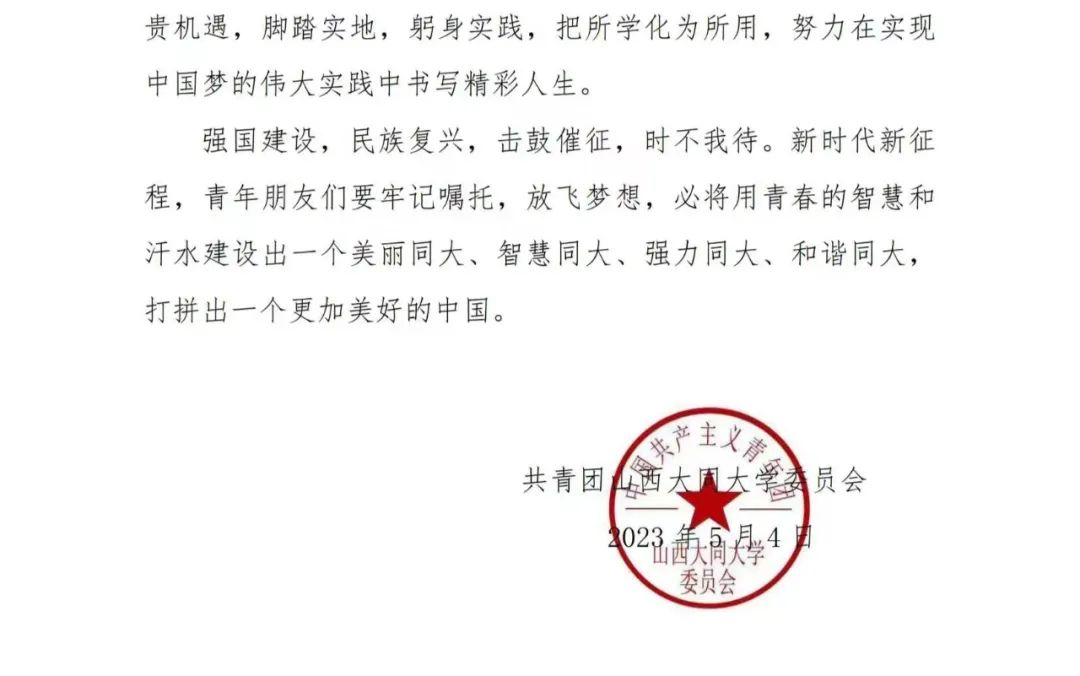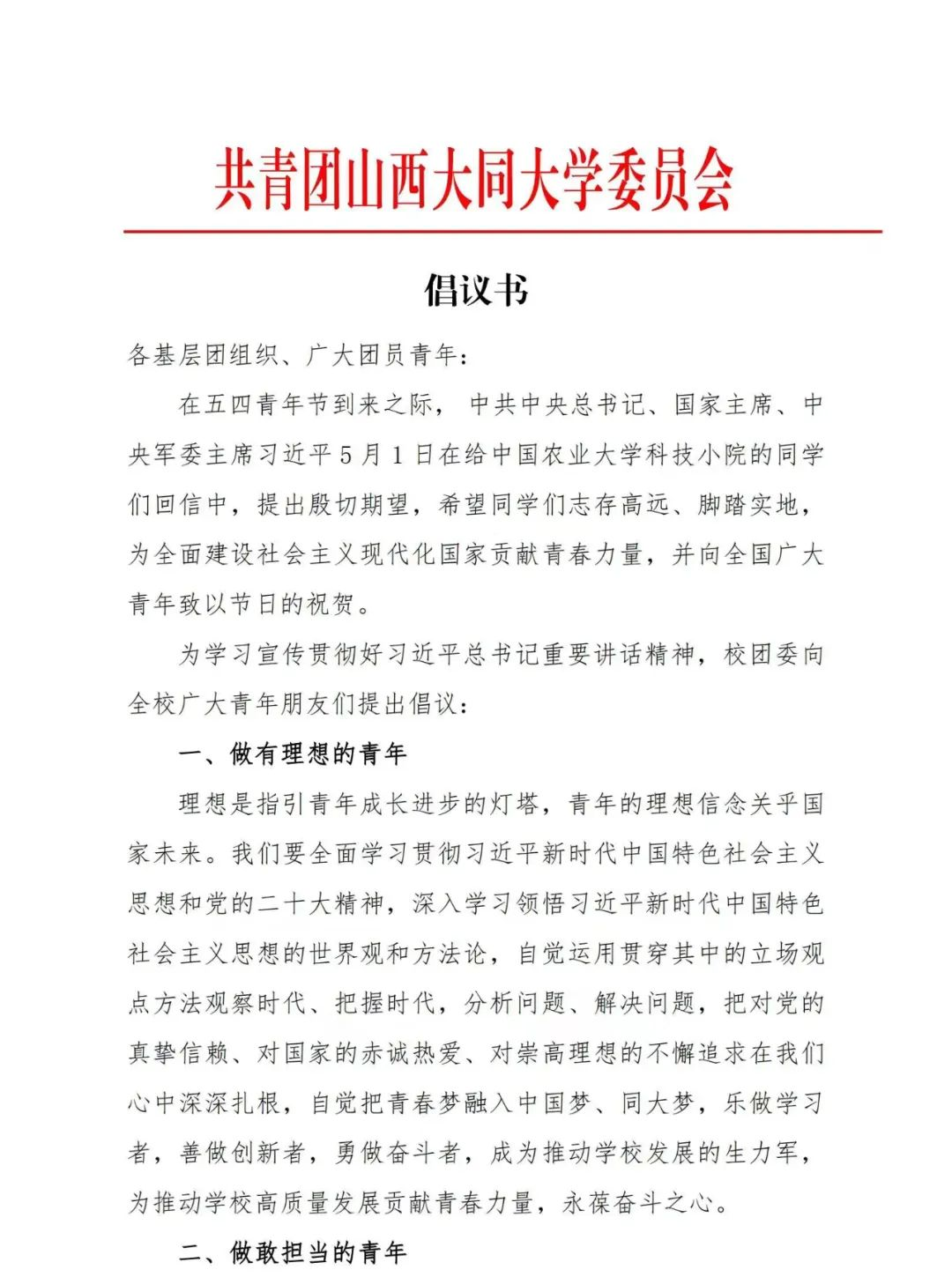 校團委認真組織團學青年學習回信精神,并向全校青年學生發出倡議書。