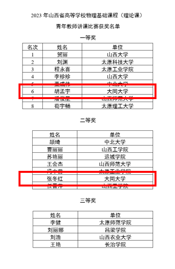 2023年山西省高等學(xué)校物理基礎(chǔ)課程青年教師講課比賽獲獎(jiǎng)名單(截圖)