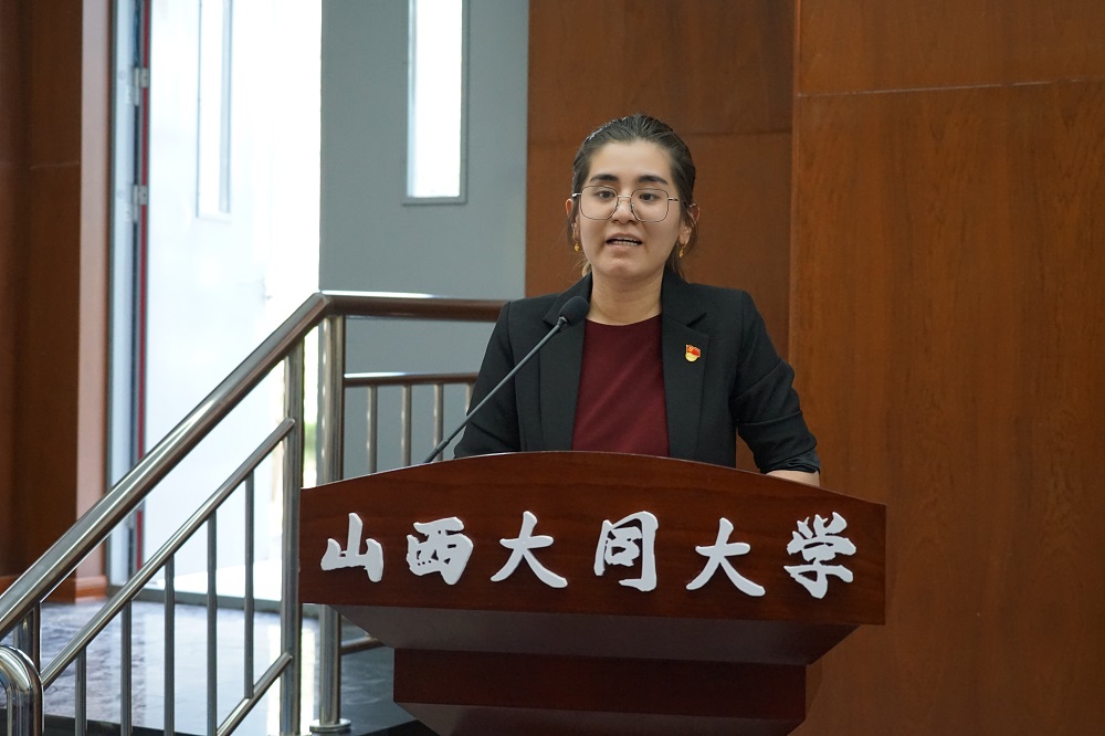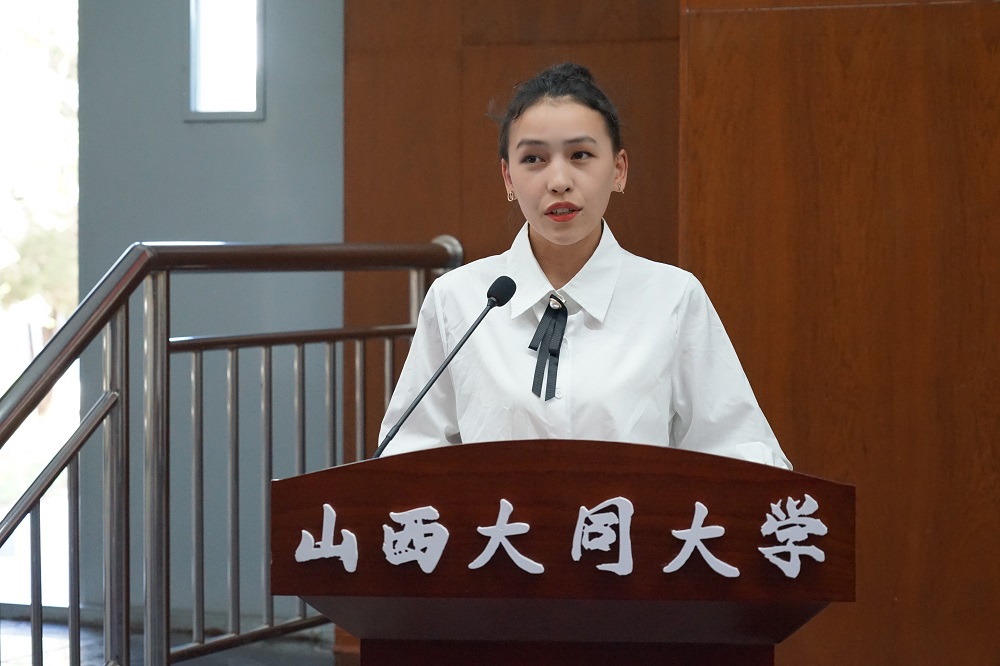 輔導(dǎo)員代表迪麗拜爾·阿力甫、學(xué)生代表阿依佐熱·艾妮瓦爾分別發(fā)言,分享了她們在民族團(tuán)結(jié)教育工作和在校學(xué)習(xí)的幸福經(jīng)歷與真摯情感,表達(dá)了對我校民族工作成果的高度評價以及對民族團(tuán)結(jié)一家親的認(rèn)同。