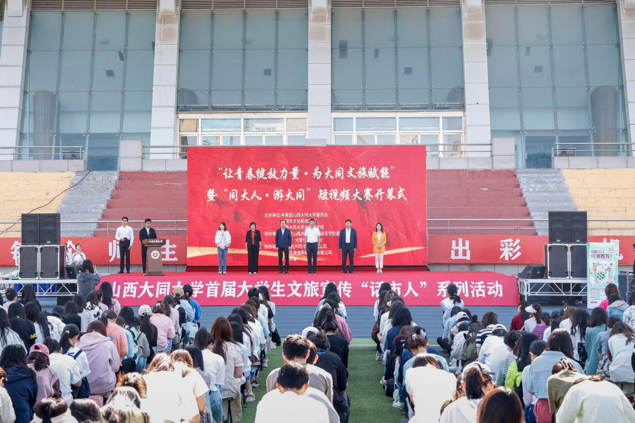 6月10日,我校聯合市文旅局開展“讓青春綻放力量·為大同文旅賦能”暨“同大人·游大同”短視頻大賽。本次大賽是全面學習貫徹習近平新時代中國特色社會主義思想主題教育和黨的二十大精神的重要舉措,由共青團山西大同大學委員會、大同市文化和旅游局、山西大同大學外國語學院主辦,共青團山西大同大學外國語學院委員會承辦。大同市文化和旅游局局長孟德昌、校團委書記劉斌焰、校黨委宣傳部副部長王麗芹、外國語學院黨委書記張俊杰、市文旅局科教科科長王雪妮、外國語學院團委書記黃艷芳出席開幕式。