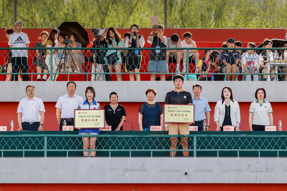 與會(huì)領(lǐng)導(dǎo)現(xiàn)場(chǎng)為獲獎(jiǎng)集體與個(gè)人頒發(fā)獎(jiǎng)狀。計(jì)算機(jī)與網(wǎng)絡(luò)工程學(xué)院、法學(xué)院、文學(xué)院分別獲得甲組團(tuán)體總分第一、第二、第三名;22級(jí)足球一班、22級(jí)體教一班、22體教三班分別獲得乙組團(tuán)體總分第一、第二、第三名。醫(yī)學(xué)院、云岡學(xué)學(xué)院榮獲“體育道德風(fēng)尚”獎(jiǎng),音樂(lè)學(xué)院、體育學(xué)院榮獲精神文明獎(jiǎng),文學(xué)院、物理與電子科學(xué)學(xué)院榮獲新聞報(bào)道獎(jiǎng)。