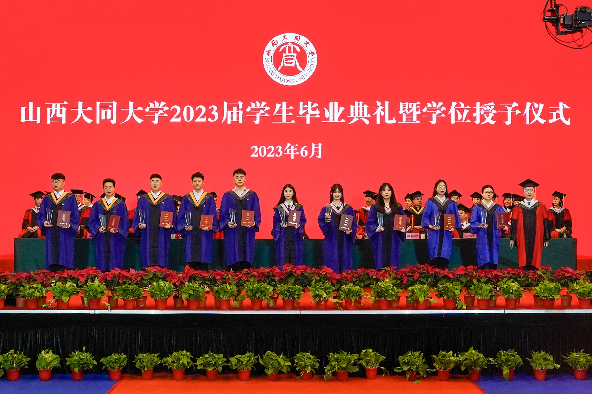 研究生畢業(yè)生代表、2020級化學專業(yè)馮海弟同學,本科畢業(yè)生代表、云岡學學院2019級文物保護技術專業(yè)高琳同學發(fā)言,代表全體畢業(yè)生向尊敬的師長、可愛的母校表達深厚感恩之情,寄語同學們找到自己的方向,成就最好的自我,綻放最美麗的人生;堅定理想、相信努力,心懷感恩、永念同大,牢記囑托、做新時代中國青年,在時代的坐標上不斷標記出璀璨奪目的出彩青春,讓青春韶華的光芒閃耀夢想星空。