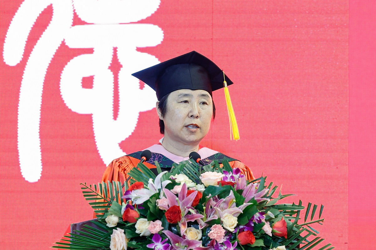 校長、校學位評定委員會主席姚麗英為研究生畢業(yè)生頒發(fā)學位證書。