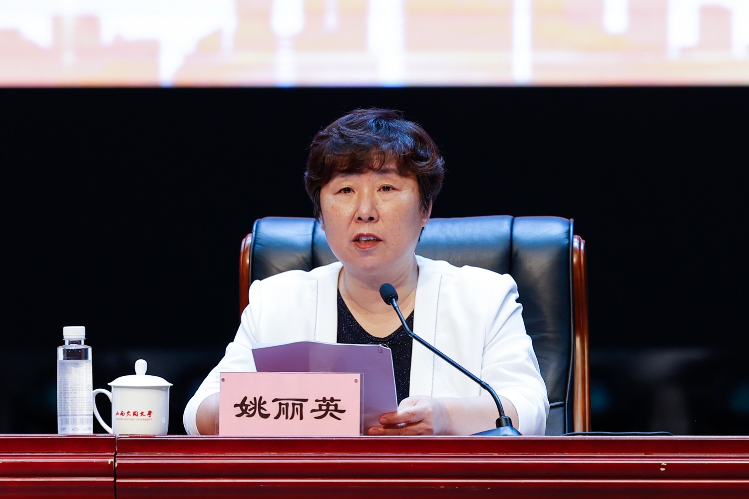 姚麗英在主持大會時指出,會議對227名優(yōu)秀個人進行了表彰,舉行了老教師榮退和新教師入職宣誓儀式,充分彰顯了“艱苦創(chuàng)業(yè)、勠力同心、執(zhí)著奉獻、開拓創(chuàng)新”的同大精神,體現(xiàn)了一代代同大人對教育事業(yè)的永續(xù)傳承。會議回顧總結(jié)了學(xué)校一年來的發(fā)展成就,圍繞“一條主線、兩個重點”工作思路,從學(xué)校、干部、老師三個層面提出具體工作要求,各基層黨委、各學(xué)院、各部門單位要認真組織學(xué)習(xí),抓好貫徹落實。