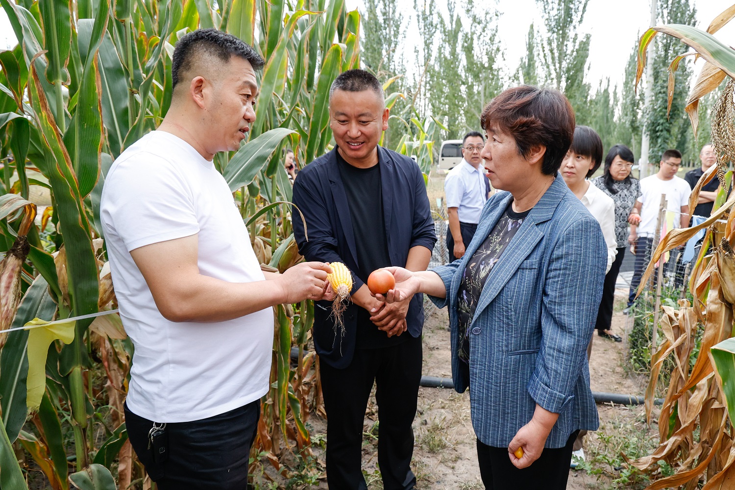 姚麗英一行首先來到位于懷仁鵝毛河的固廢人造土壤修復鹽堿地試驗田。該項目由我校化學與化工學院趙海東博士和特聘教授暢吉慶教授共同實施,致力于使用固廢物,輔以關鍵技術對鹽堿地進行人造土壤修復,修復后的鹽堿地可入國家地庫,可進行大數據置換。經過團隊的反復試驗與不懈努力,憑借“固廢人造土壤在修復鹽堿地和沙荒地中的應用”技術,學校成功獲評中國2023年度“利廢新材料”科技創新先鋒。姚麗英聽取了趙海東關于項目進展的情況匯報,對項目的創新性以及取得的階段性成果予以肯定。她強調,要結合項目實際,持續增強研究的前瞻性、主動性、創造性,做好成果轉化,進一步打造團隊、凝聚合力,以有組織科研推動項目研究取得新突破新成效。同時要堅持開放理念,加強與有關地市各區局的交流合作,廣泛聽取關于項目實施的意見建議,有的放矢地加以研究改進,切實提高科研成果的影響力和實用性,以高水平科研不斷提升學校的社會服務能力。