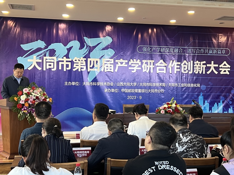 9月20日上午,由我校和大同市科學(xué)技術(shù)協(xié)會(huì)、大同市科學(xué)技術(shù)局、大同市工業(yè)和信息化局主辦的大同市第四屆產(chǎn)學(xué)研合作創(chuàng)新大會(huì)在國信時(shí)代廣場召開。大同市科學(xué)技術(shù)協(xié)會(huì)主席王正忠主持大會(huì)。校黨委常委、副校長馬軼明出席會(huì)議并講話。全市50多家企業(yè)代表和我校教師代表參加了此次大會(huì)。