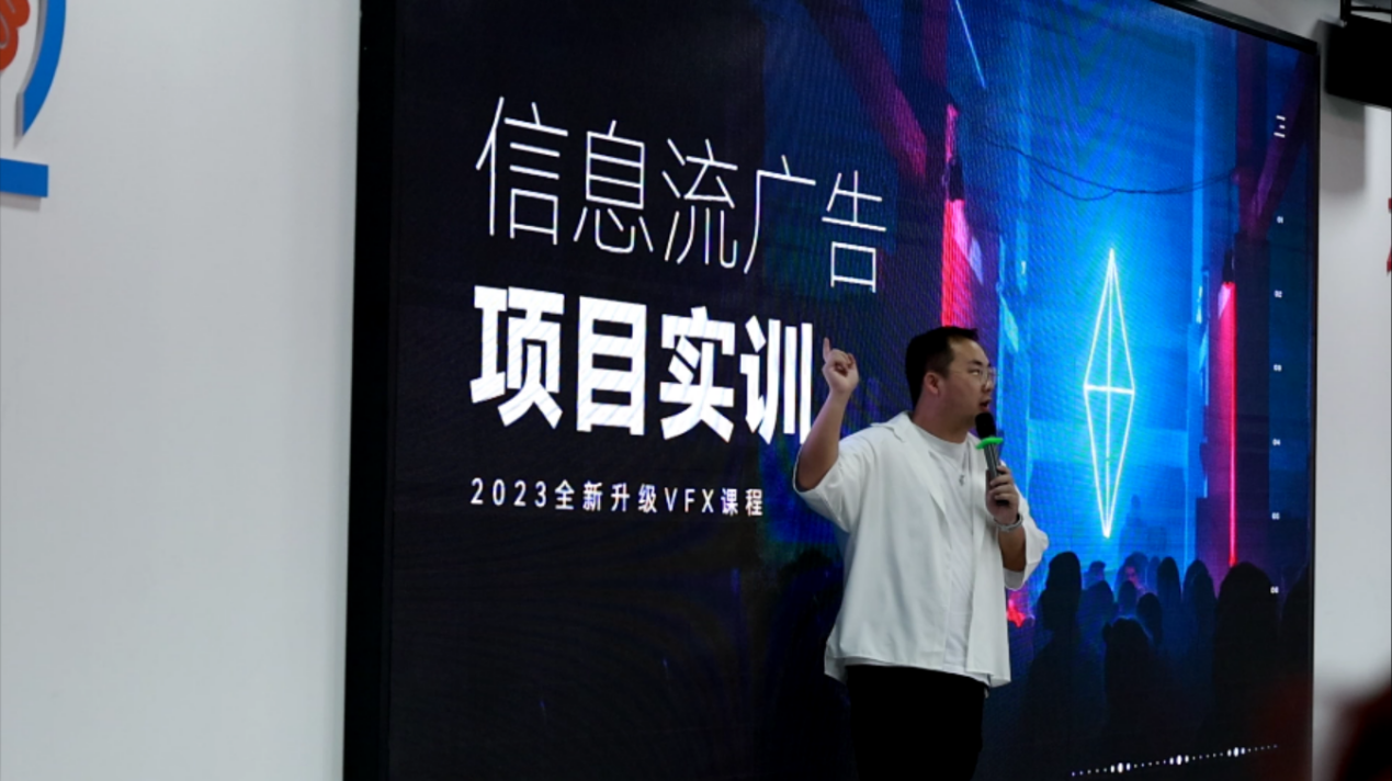 實訓課程的教學模式也與傳統課堂不同——采用商業性項目推進模式,讓學生進行項目制作和匯報總結。比如,影視班的項目有信息流廣告,劇情片廣告,企業類廣告,以及商業快剪。