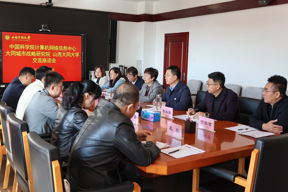 10月15日上午,中國科學(xué)院計(jì)算機(jī)網(wǎng)絡(luò)信息中心大數(shù)據(jù)分析與計(jì)算技術(shù)國家地方聯(lián)合工程實(shí)驗(yàn)室產(chǎn)業(yè)轉(zhuǎn)移中心主任王九龍、高級(jí)研究員王宇赫,大同城市戰(zhàn)略研究院院長(zhǎng)李波,知網(wǎng)山西分公司行業(yè)總監(jiān)王軍一行6人來校,就高層次人才工作交流座談。校黨委副書記、校長(zhǎng)姚麗英,校黨委常委、副校長(zhǎng)史水鴻出席交流座談會(huì)。煤炭工程學(xué)院院長(zhǎng)寧掌玄、計(jì)算機(jī)與網(wǎng)絡(luò)工程學(xué)院院長(zhǎng)宋曉霞、科學(xué)技術(shù)部副部長(zhǎng)董麗娟參加座談會(huì)。座談會(huì)由黨委人才辦副主任張弘弛主持。