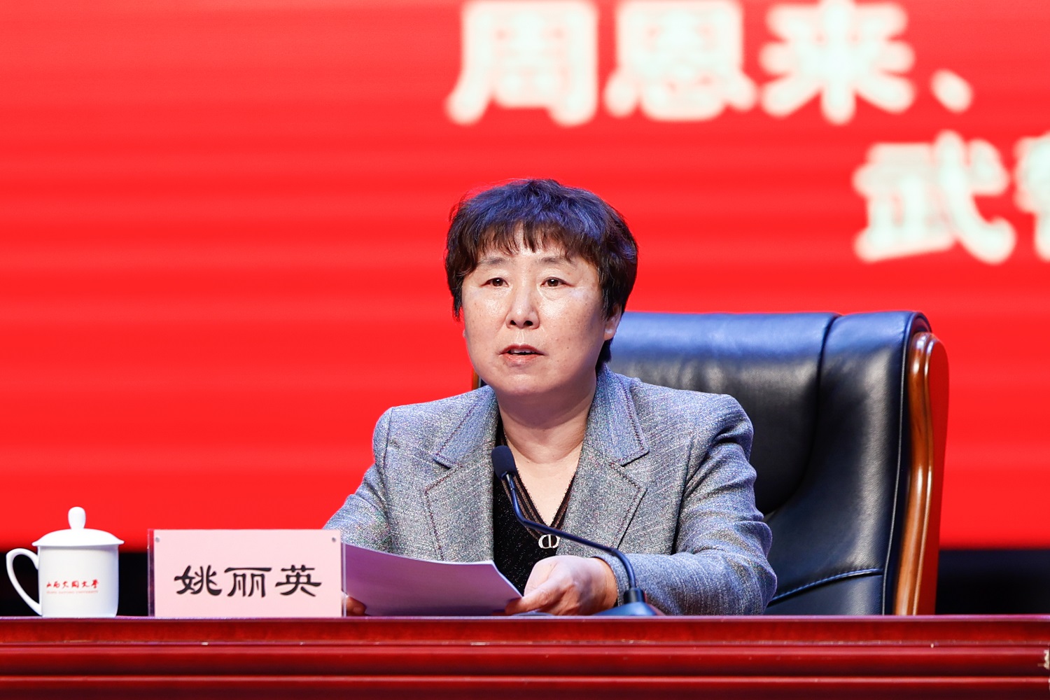 懷著對(duì)老一輩革命家的敬仰與懷念,姚麗英滿含熱淚作了總結(jié)講話。她表示,人民總理為人民,人民總理人民愛(ài),紀(jì)東老師為我們上了一堂深刻的思想政治課。她要求,各基層黨組織要認(rèn)真?zhèn)鬟_(dá)學(xué)習(xí)貫徹會(huì)議精神,引導(dǎo)廣大干部師生繼承和弘揚(yáng)周恩來(lái)同志等老一輩革命家的偉大精神,傳承好黨的紅色基因,發(fā)揚(yáng)好黨的優(yōu)良傳統(tǒng),勇?lián)鷷r(shí)代使命,不斷把中華民族偉大復(fù)興的歷史偉業(yè)推向前進(jìn)。
