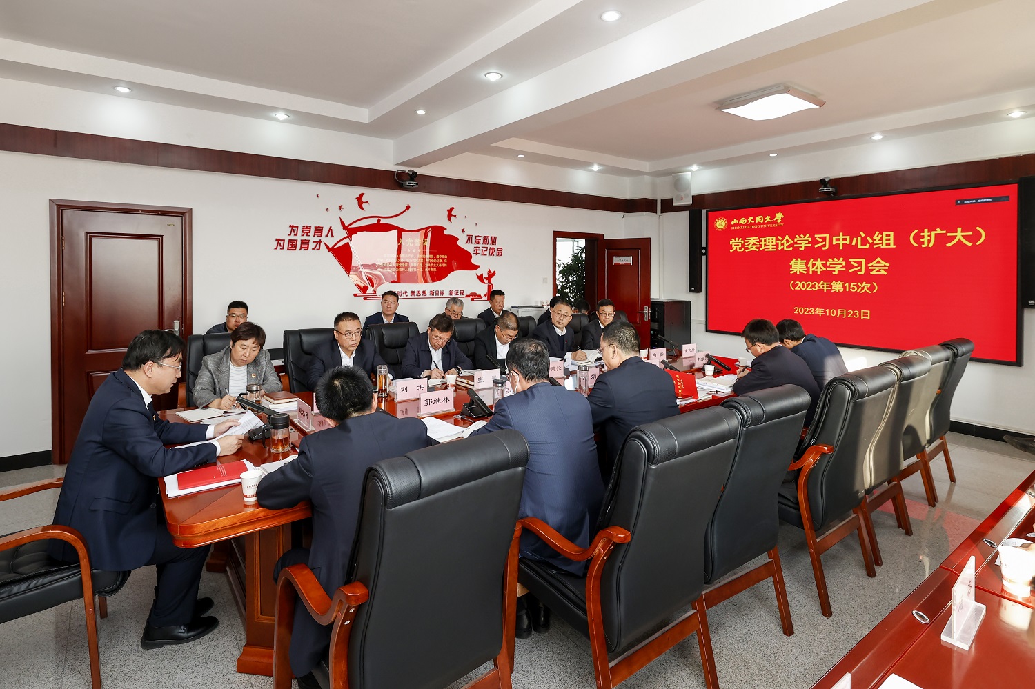 10月23日,我校召開黨委理論學習中心組(擴大)2023年第十五次集體學習會,傳達學習習近平總書記在江西考察時的重要講話精神、習近平總書記對宣傳思想文化工作重要指示精神和全國宣傳思想文化工作會議精神,專題學習習近平文化思想和“加強斗爭精神和斗爭本領養成”。校黨委書記趙水民主持會議并講話。