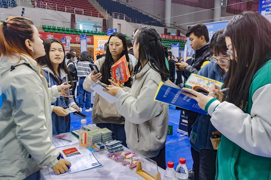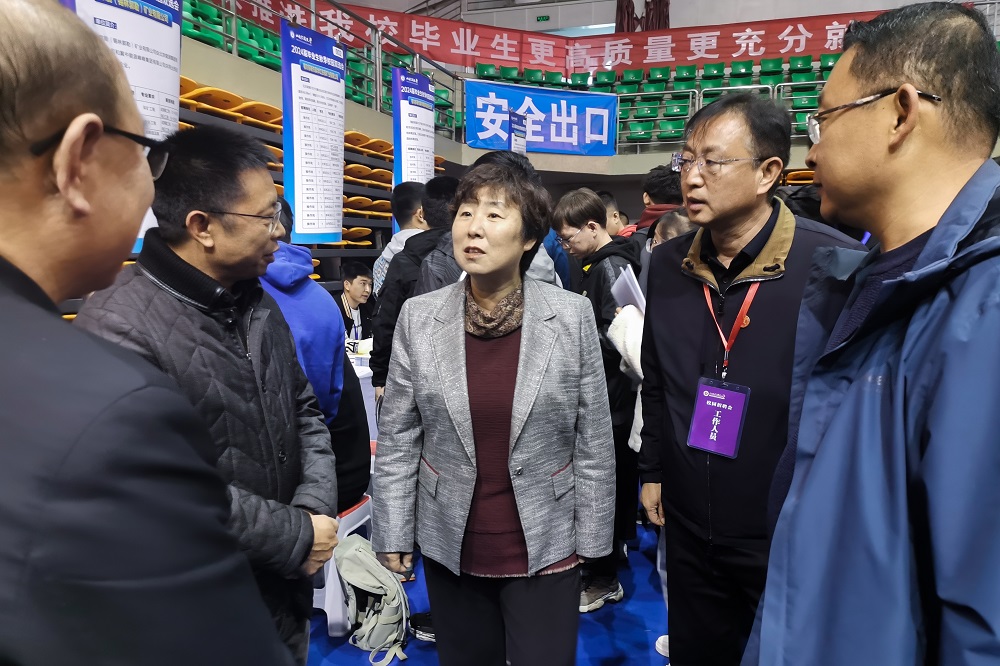 ?? 11月5日,我校2024屆畢業(yè)生秋季校園招聘雙選會(huì)在御東校區(qū)天翔體育館舉行。來(lái)自北京、廣東、內(nèi)蒙古、河北、山西等地的200余家用人單位赴會(huì)攬才,帶來(lái)7000多個(gè)就業(yè)崗位,涉及礦業(yè)、教育、生物醫(yī)藥、食品、科技、新能源、電力、物流、文旅等多個(gè)領(lǐng)域。校黨委副書記、校長(zhǎng)姚麗英,校黨委副書記寇福明來(lái)到雙選會(huì)現(xiàn)場(chǎng)調(diào)研指導(dǎo)工作。
