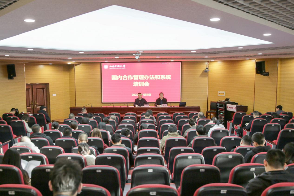 11月9日下午,我校在行知樓0230會議室舉行《山西大同大學國內合作管理辦法》及管理信息系統培訓會。校黨委常委、副校長史水鴻出席會議并講話,發展規劃合作部張健主持會議,學校各部門、學院分管國內合作的領導及系統管理員參加此次培訓會。
