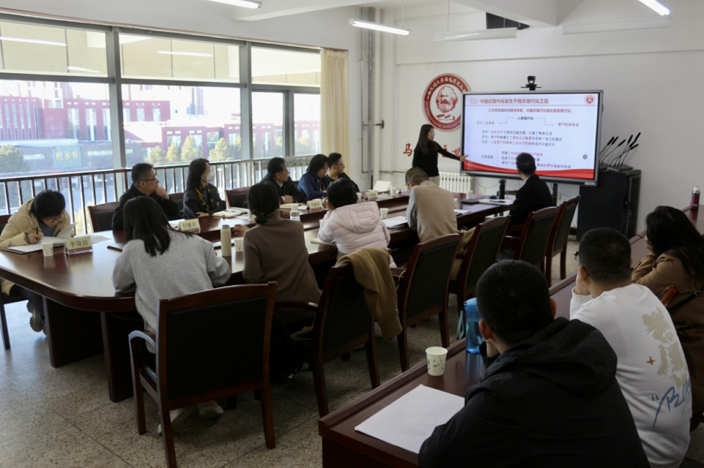 為進(jìn)一步引導(dǎo)學(xué)校黨員干部群眾深刻理解中國(guó)式現(xiàn)代化的鮮明特色和豐富內(nèi)涵,更好貫徹落實(shí)黨的二十大精神,把握強(qiáng)國(guó)建設(shè)、民族復(fù)興的目標(biāo)任務(wù)和實(shí)踐要求,11月9日下午,校黨委宣傳部、黨委講師團(tuán)聯(lián)合馬克思主義學(xué)院圍繞《中國(guó)式現(xiàn)代化面對(duì)面》理論讀物舉辦集體備課會(huì)。校黨委宣傳部部長(zhǎng)王娟,馬克思主義學(xué)院黨委書(shū)記劉殿祥、黨委副書(shū)記付建兵、副院長(zhǎng)杜海燕、李奇潔,黨委講師團(tuán)部分成員、馬克思主義學(xué)院骨干教師共同參加,副院長(zhǎng)杜海燕主持。