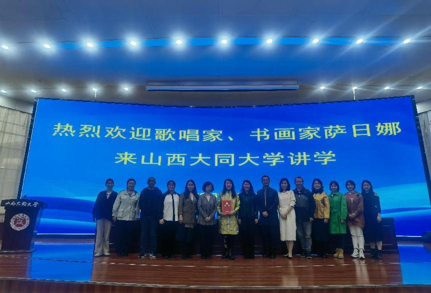 10月16日下午,音樂學院特邀我國著名歌唱家薩日娜在科技樓報告廳舉辦了一場聲樂學術交流活動,這也是我校“大同講堂”的第四十一場學術講座。音樂學院黨委書記李凌雁、院長吳巧云,以及學院近三百名師生參加了本次學術活動。在此次學術活動中,由校黨委常委、副校長、藝術學部主任石鳳珍為薩日娜頒發了山西大同大學客座教授聘書。